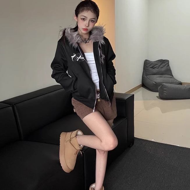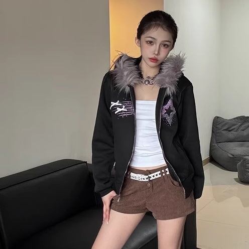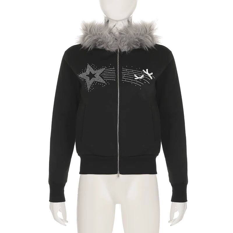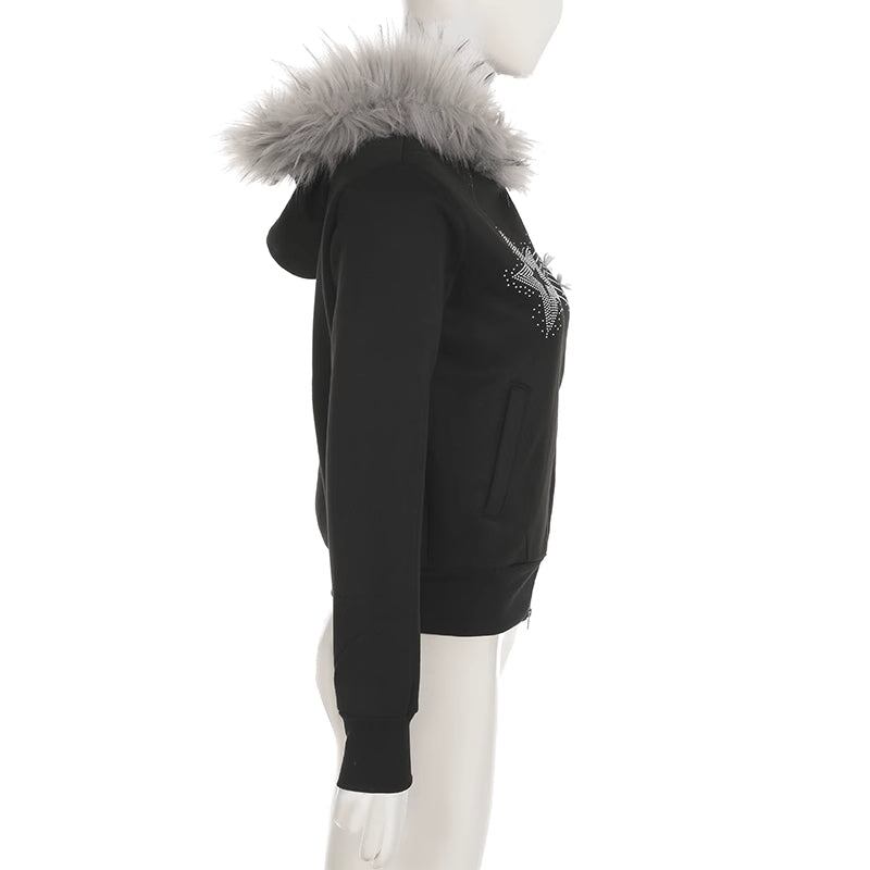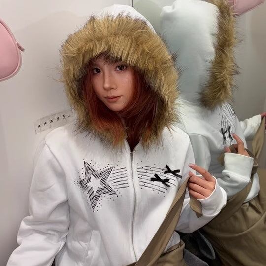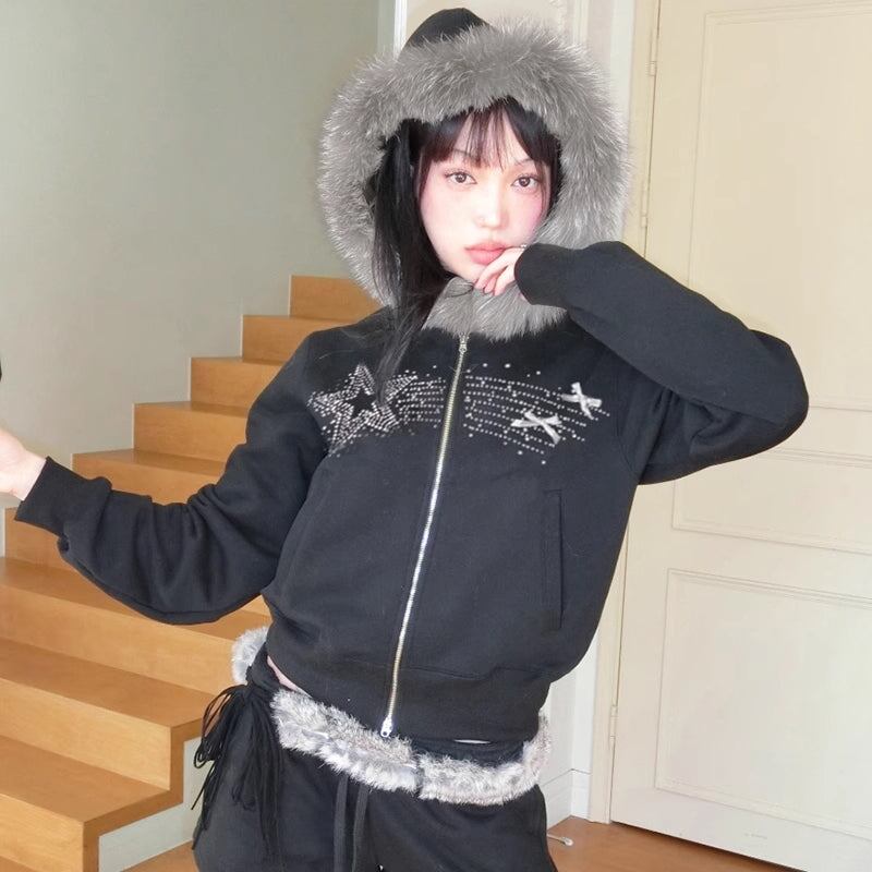 ファーフード パーカー レディース 韓国 ファッション ラメ デザイン キラキラ ジップパーカー スウェット フーディー