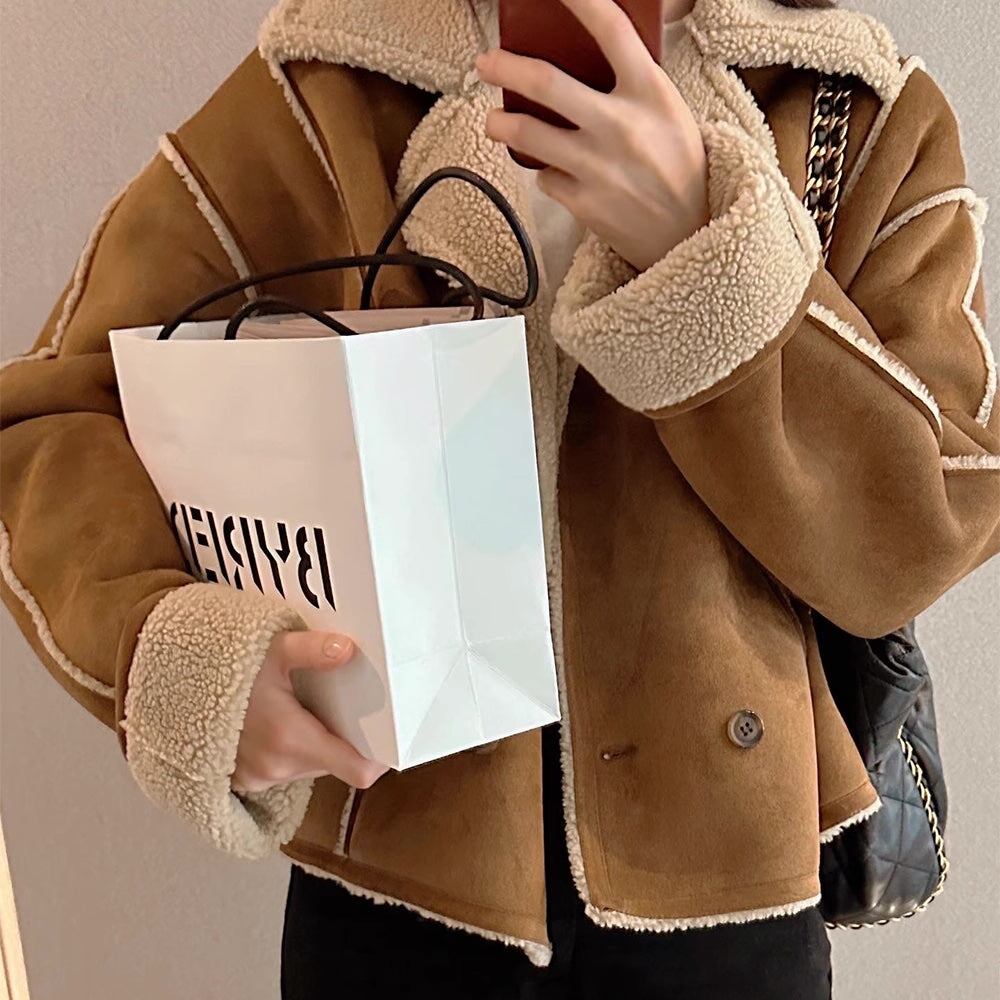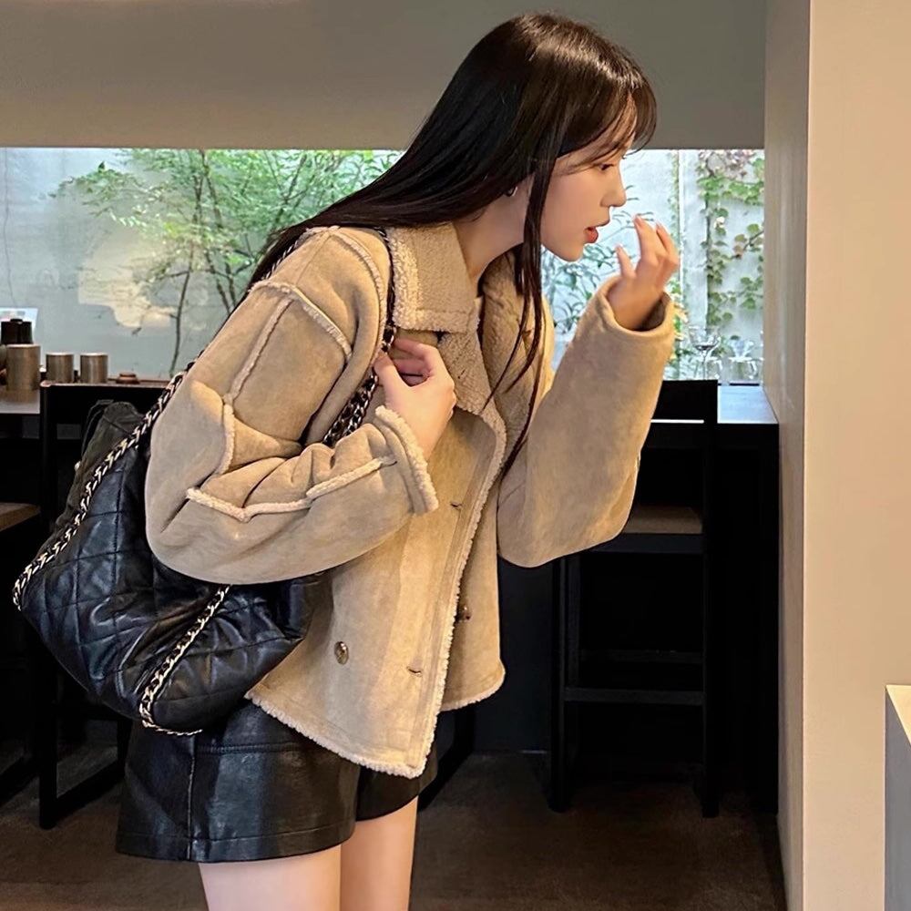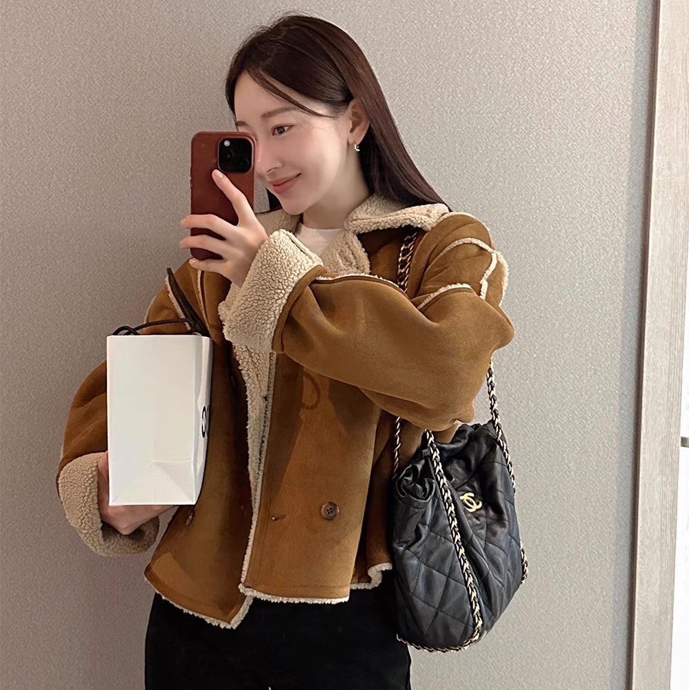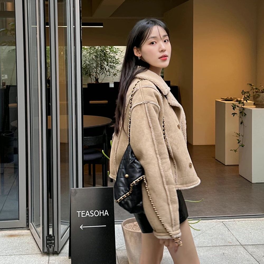 フェイクムートン ジャケット レディース 韓国 ファッション 冬アウター 軽量 防寒 裏ボア ジャケット