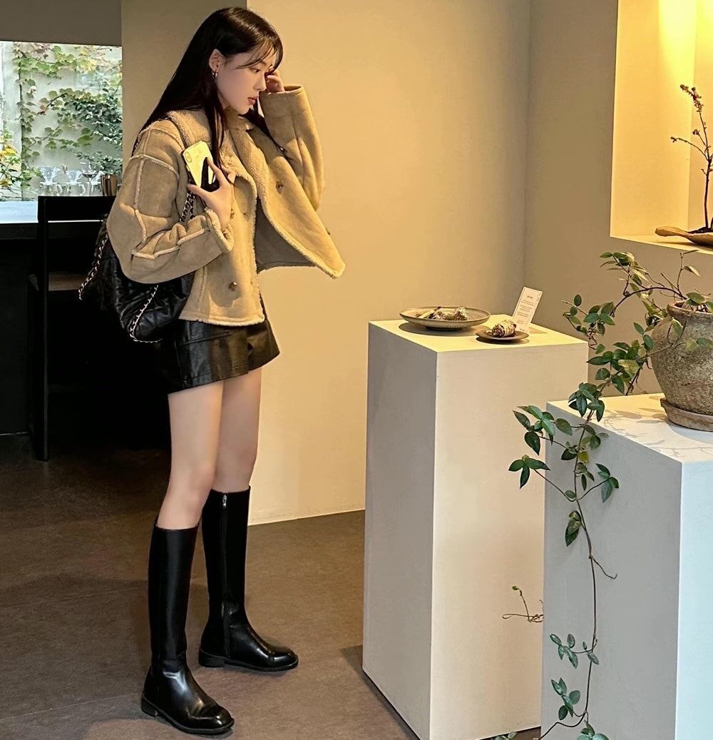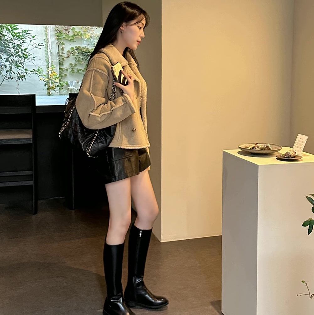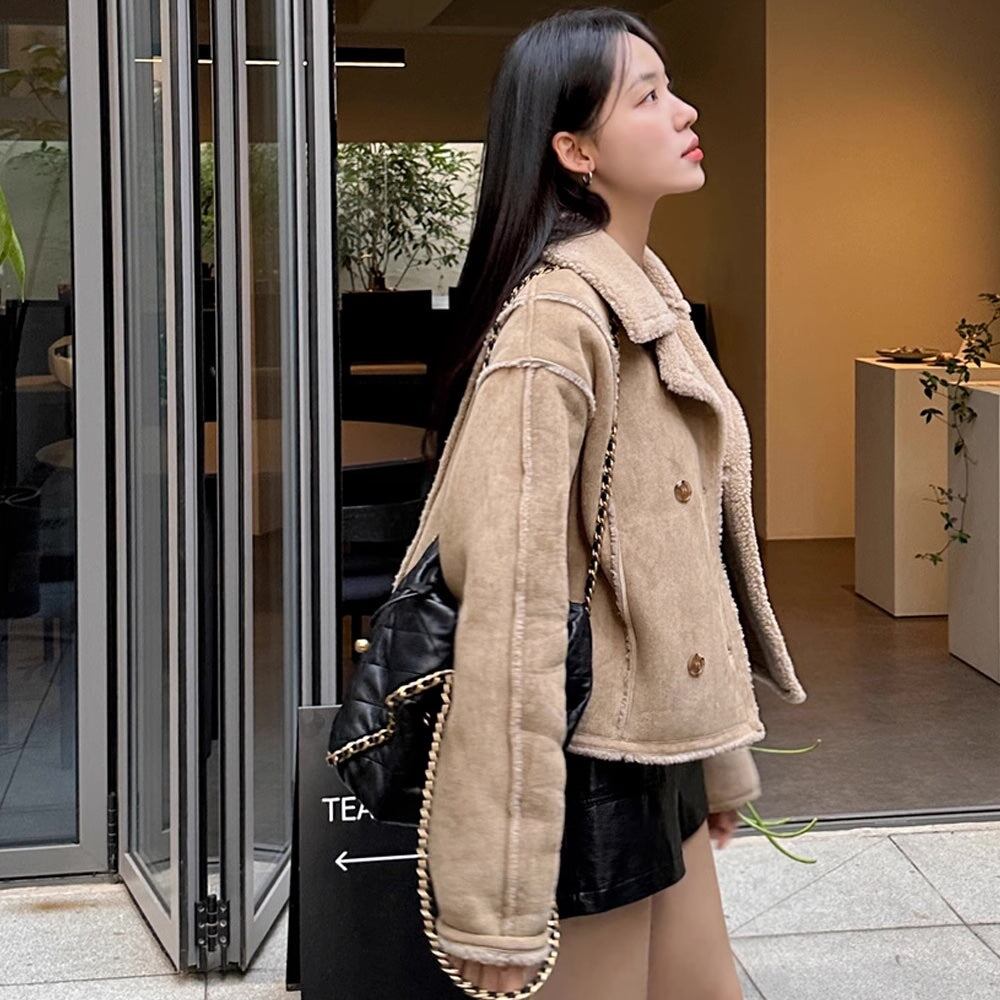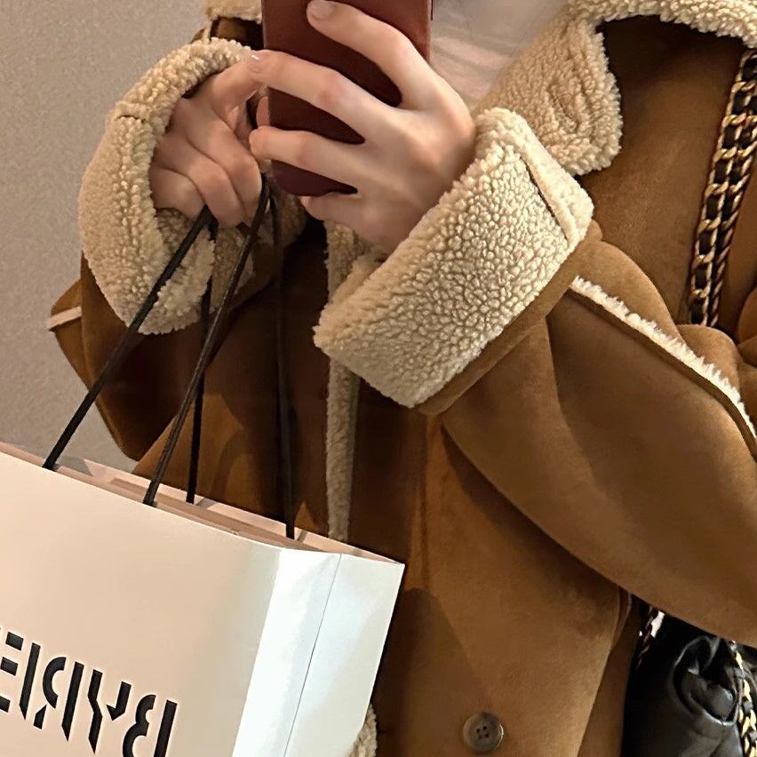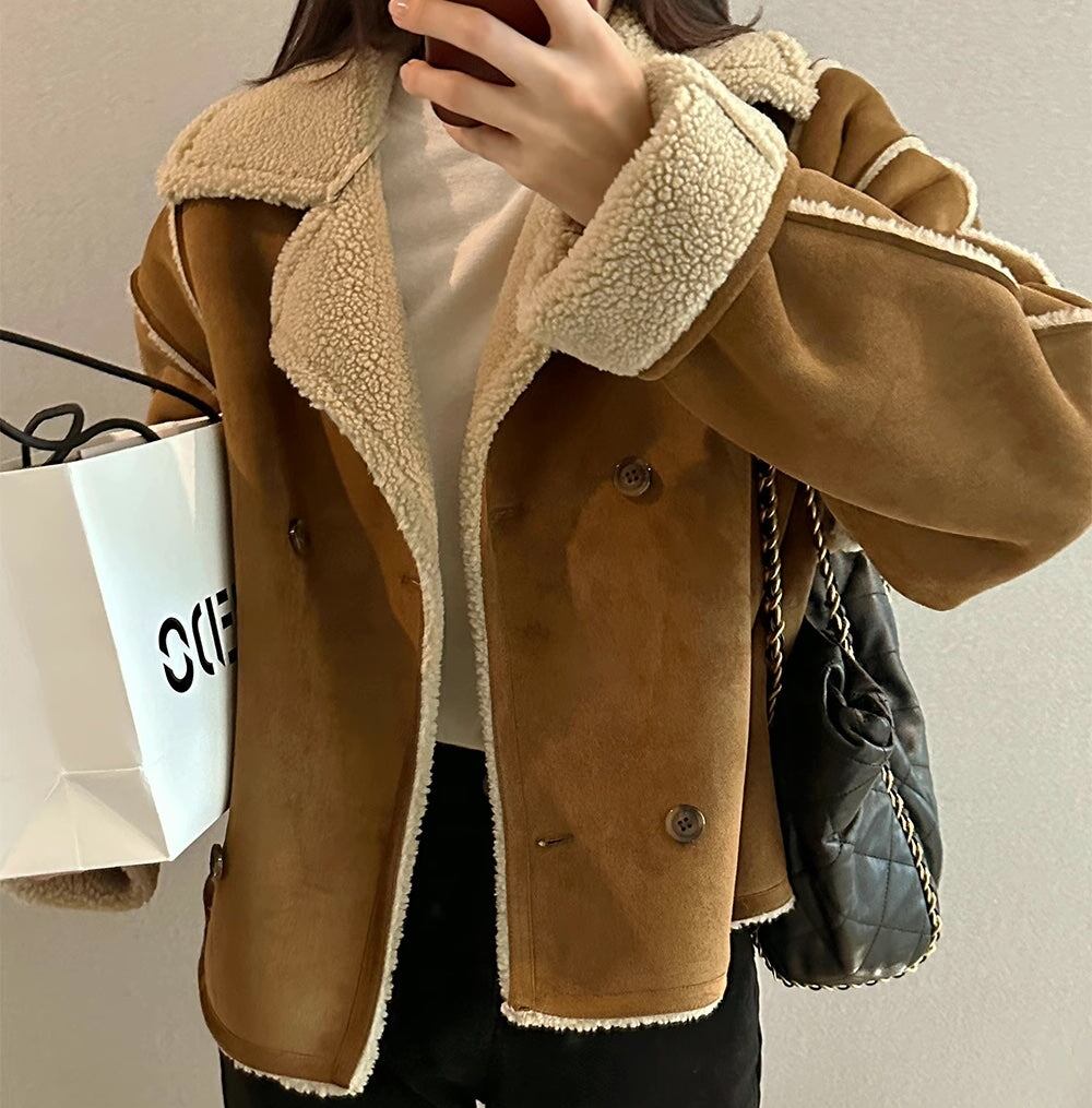 フェイクムートン ジャケット レディース 韓国 ファッション 冬アウター 軽量 防寒 裏ボア ジャケット