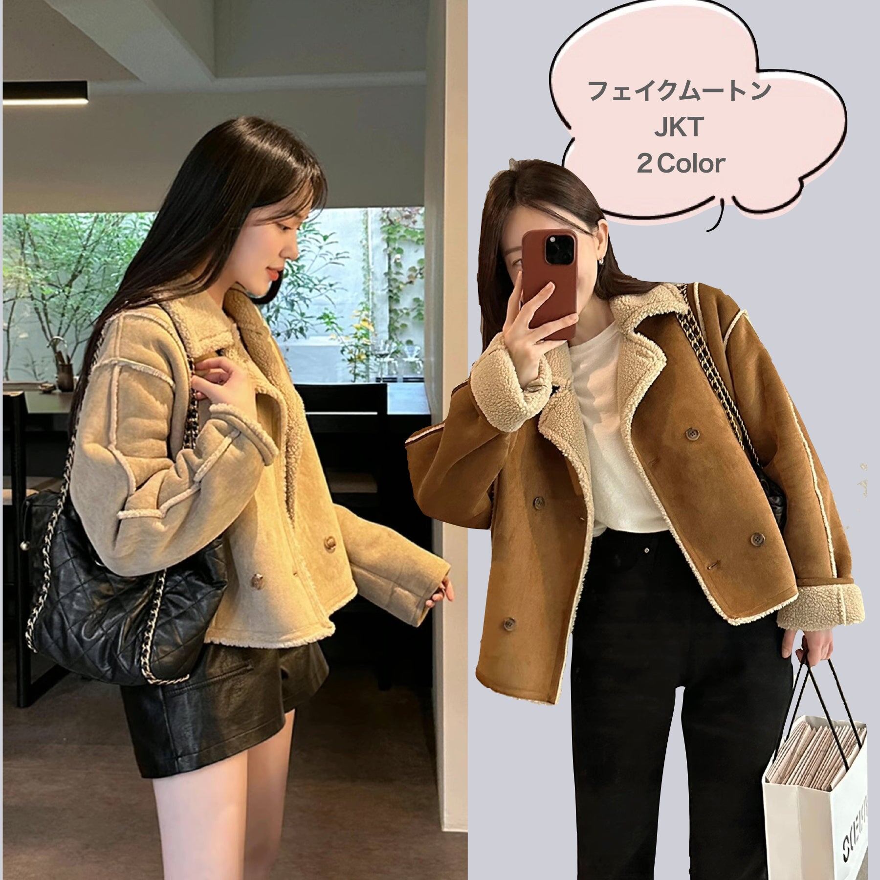 フェイクムートンジャケット レディース 韓国 ファッション 冬アウター おしゃれ 軽量 防寒 裏ボア ジャケット ガーリー
