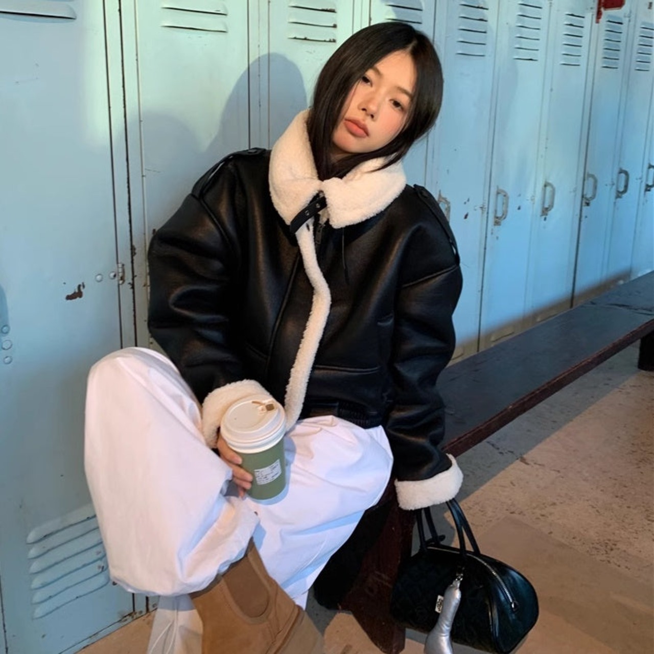 フェイクムートンジャケット レディース 韓国 ファッション 冬アウター おしゃれ 黒アウター 防寒 裏ボア 襟ボア