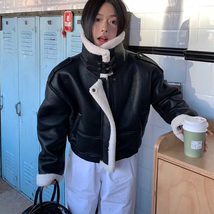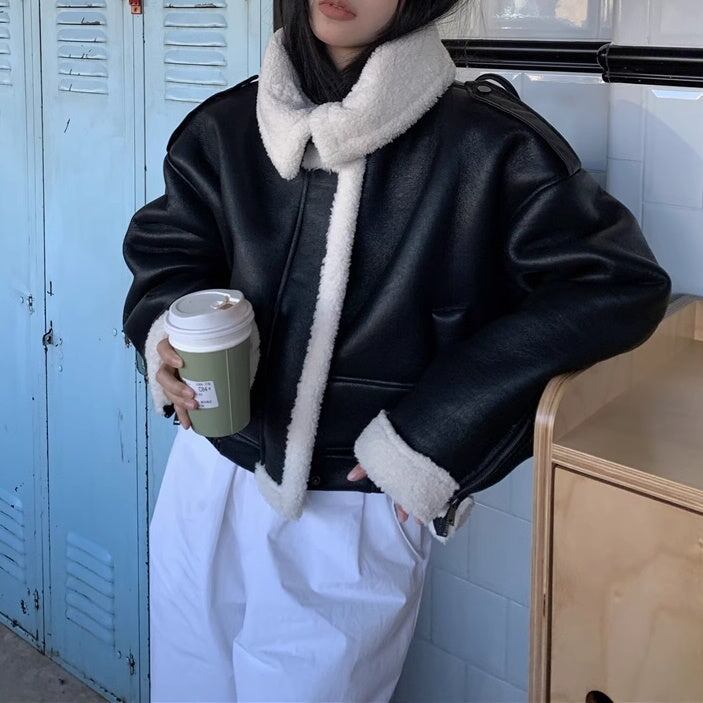 フェイクレザー ボア ジャケット レディース 韓国 冬アウター 防寒 裏ボア ブルゾン