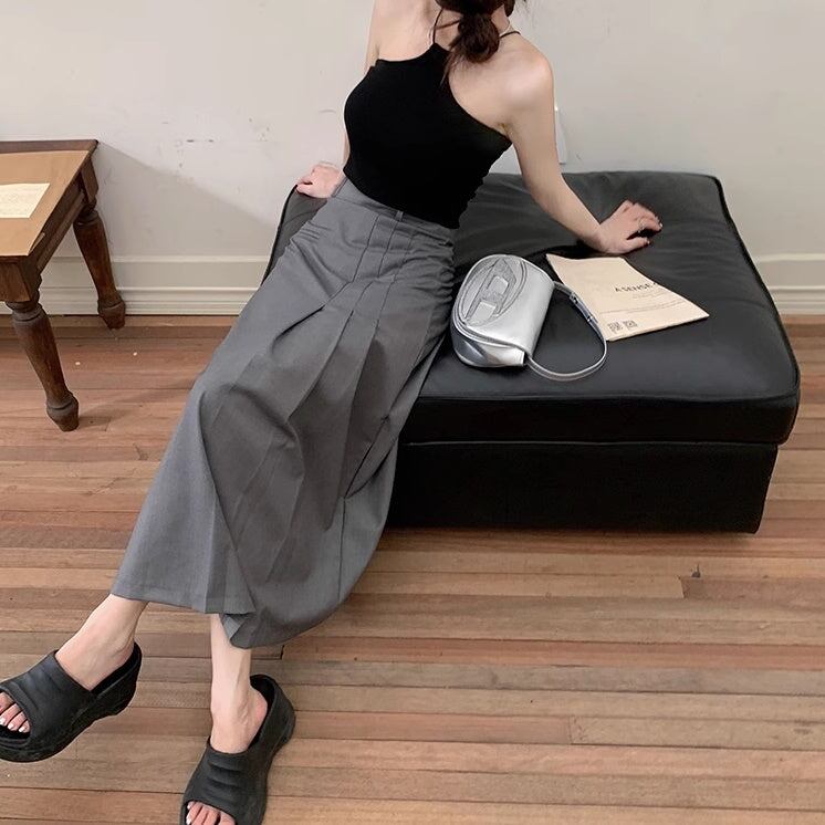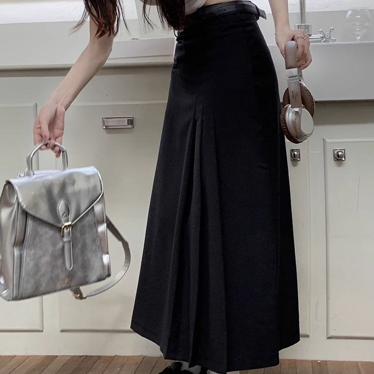 プリーツスカート ロングフレア レディース 韓国 ファッション Aライン フレア ロング 無地 スカート アシメ 左右非対称