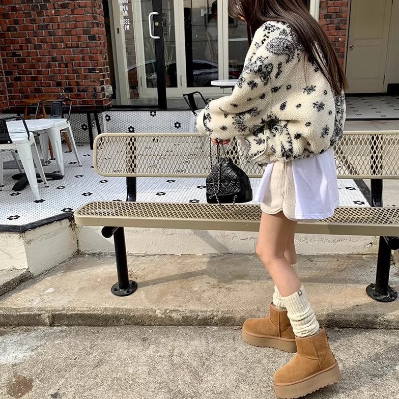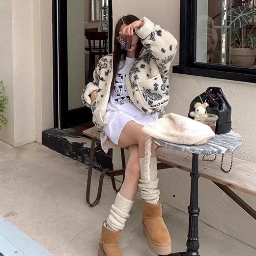 ペイズリー柄 ボアジャケット レディース 韓国 ファッション ノーカラー ボアフリース ブルゾン 裏地 キルティング 冬アウター