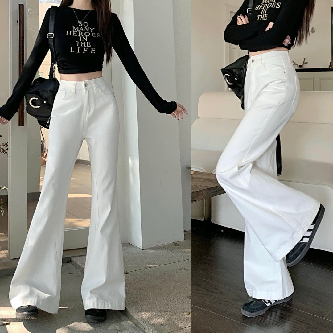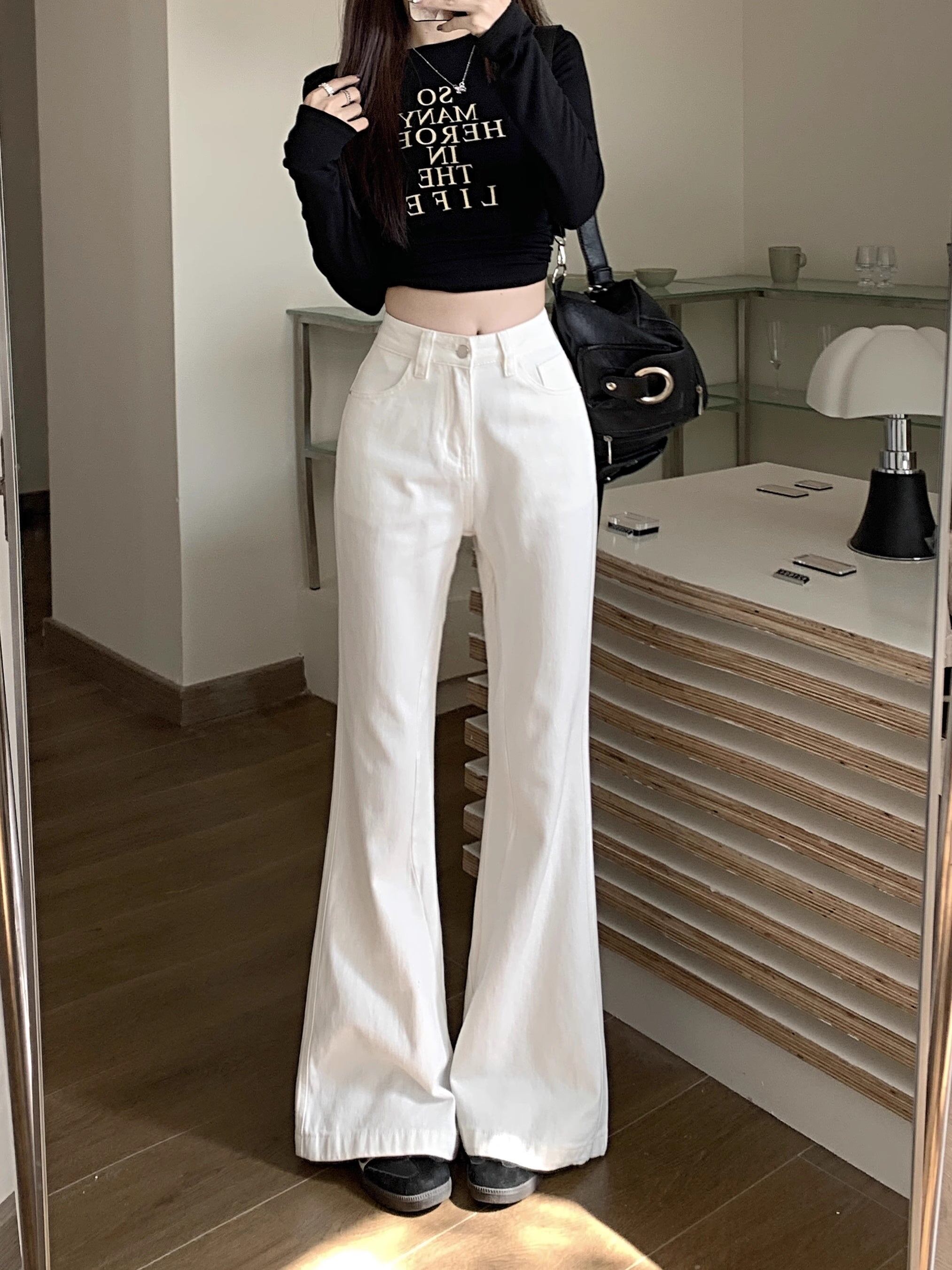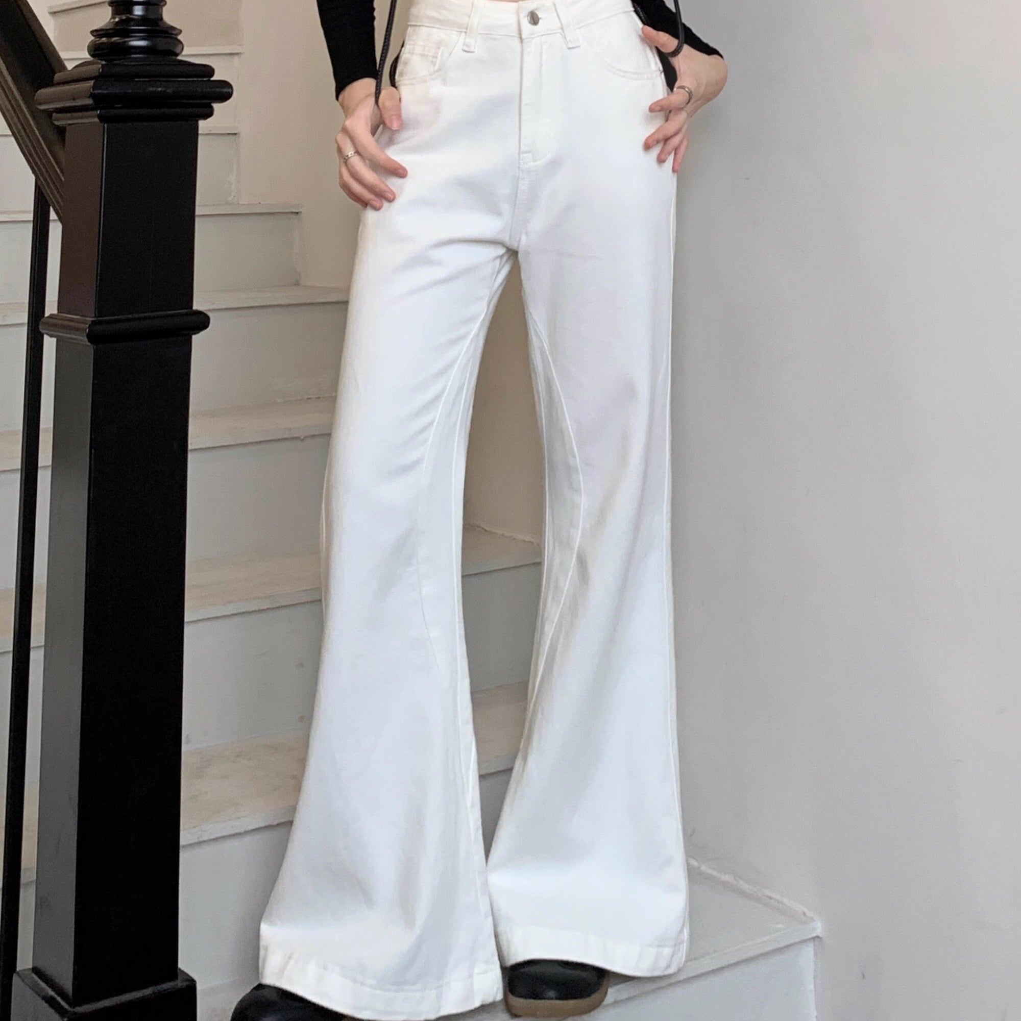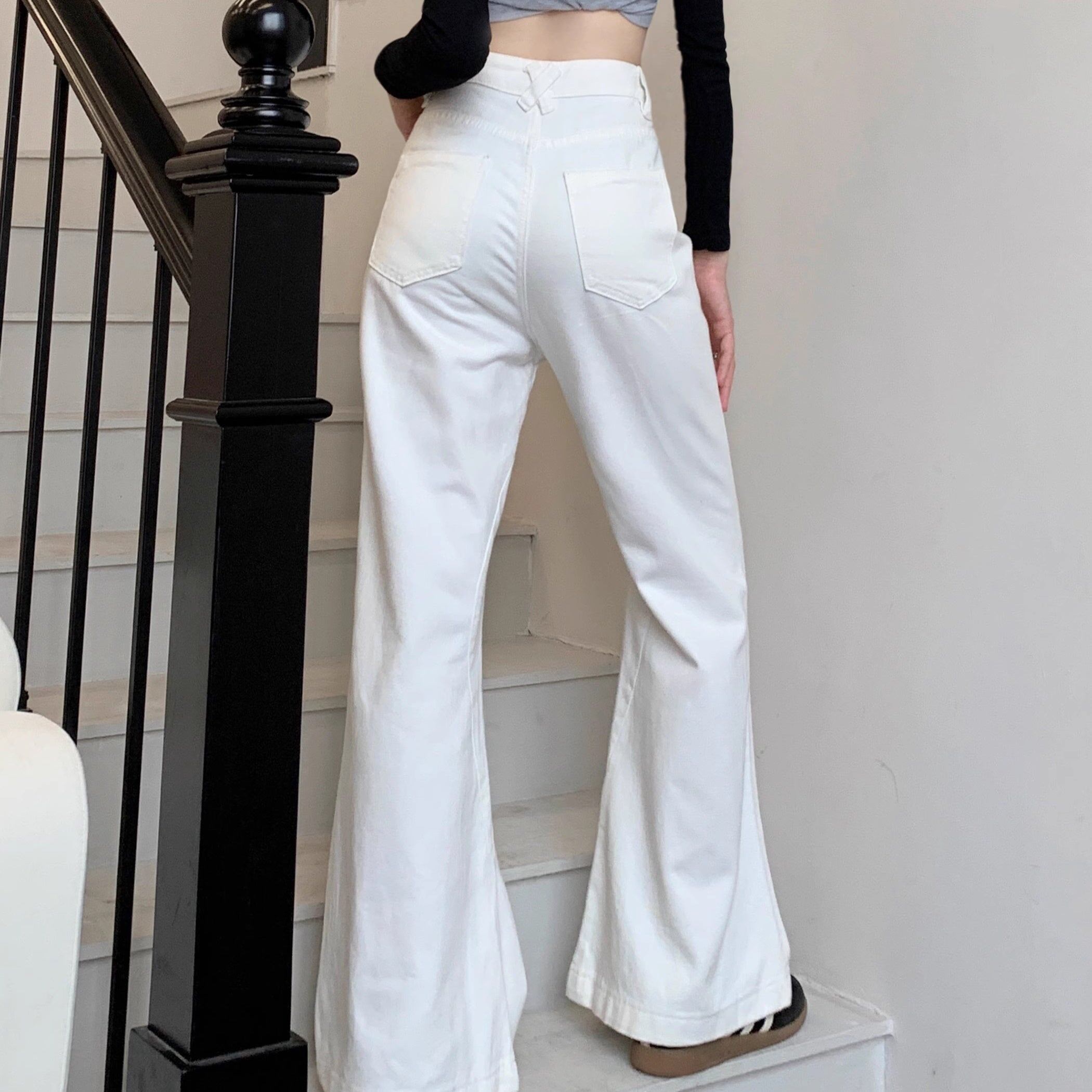 ホワイト デニムパンツ レディース 韓国 ファッション 白デニム ブーツカット デニム
