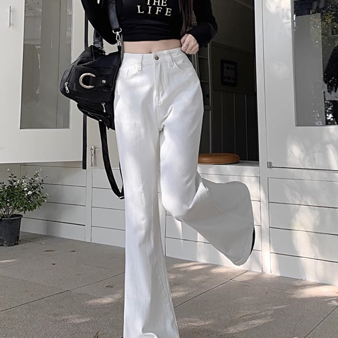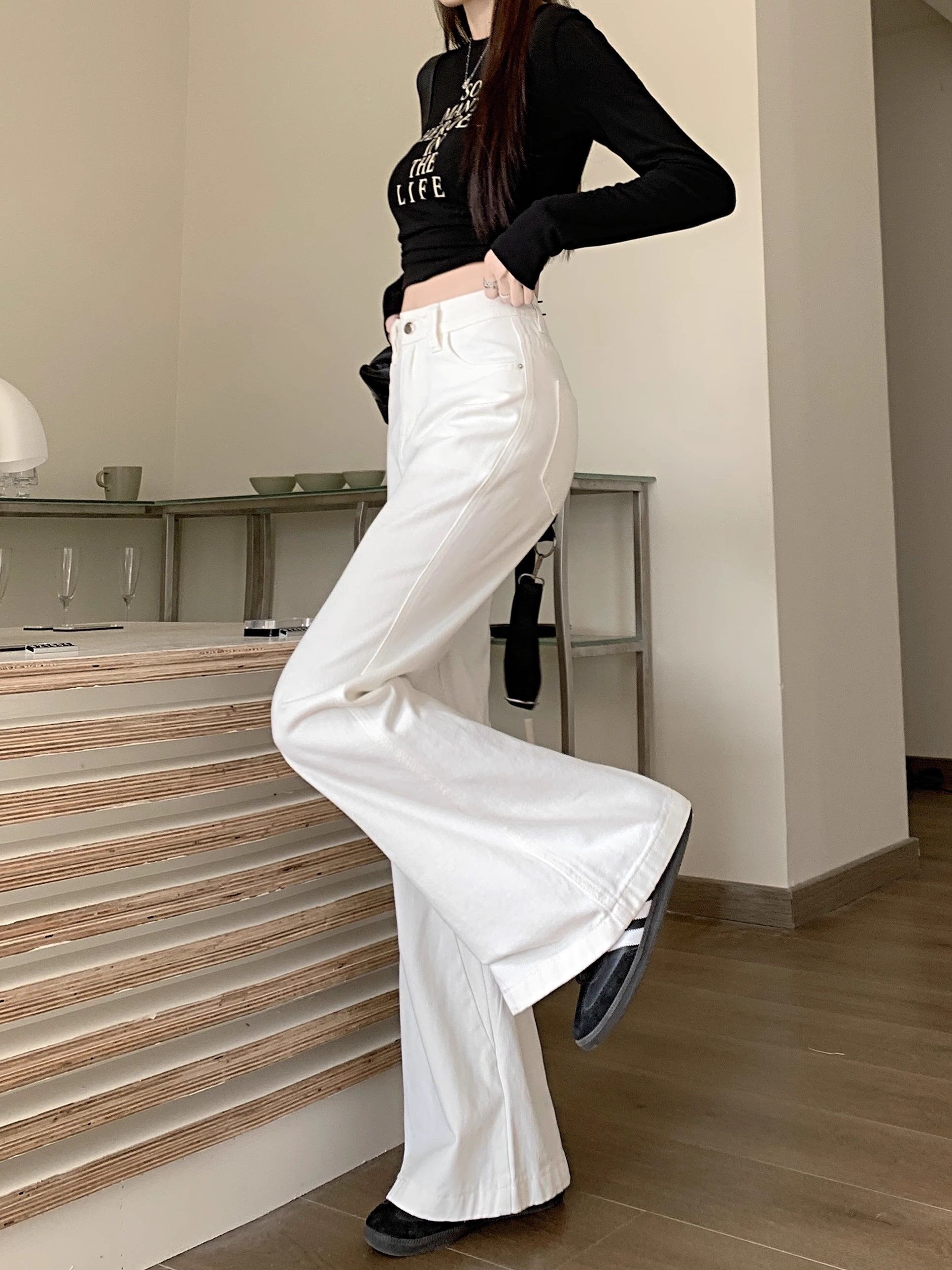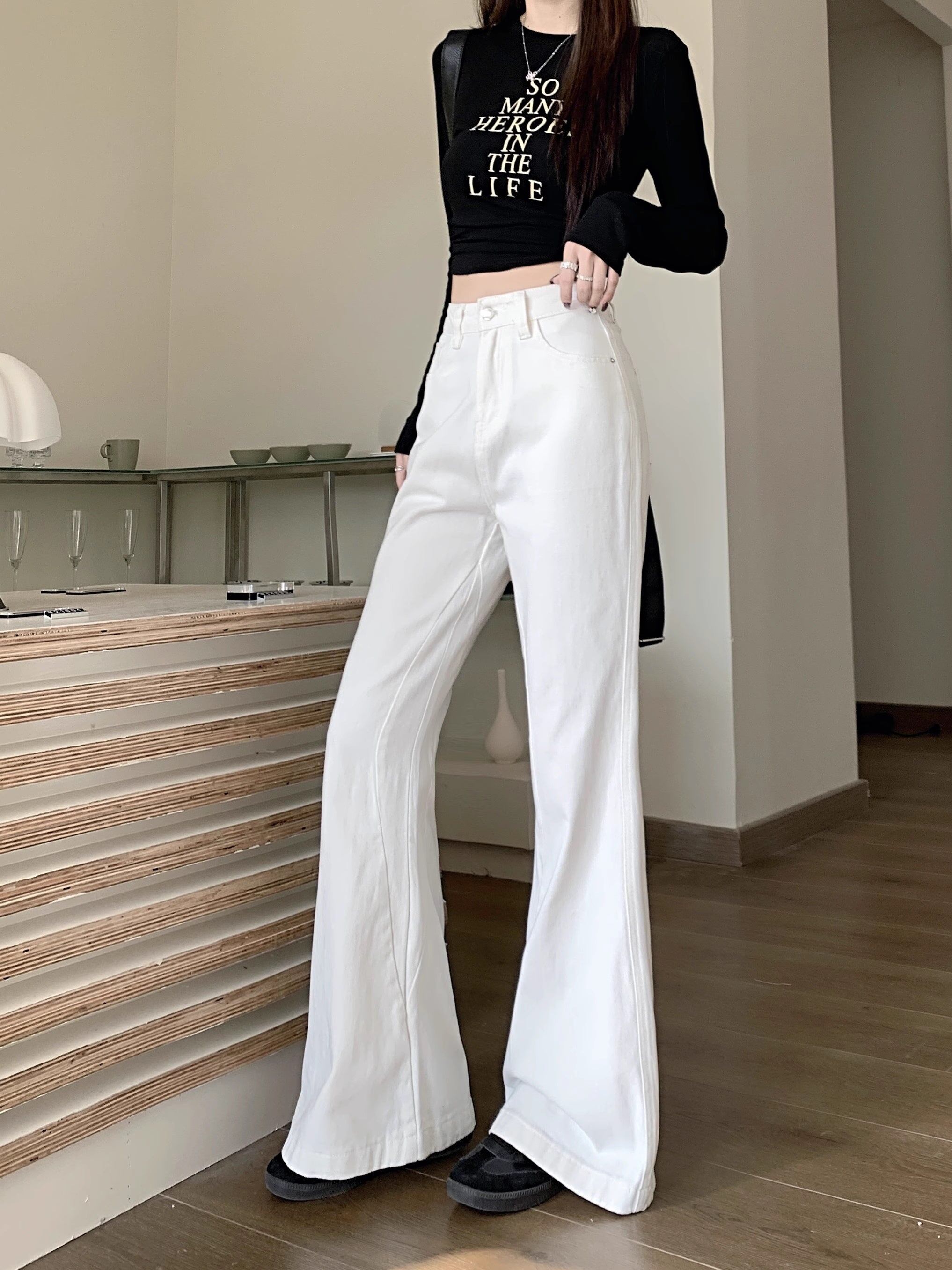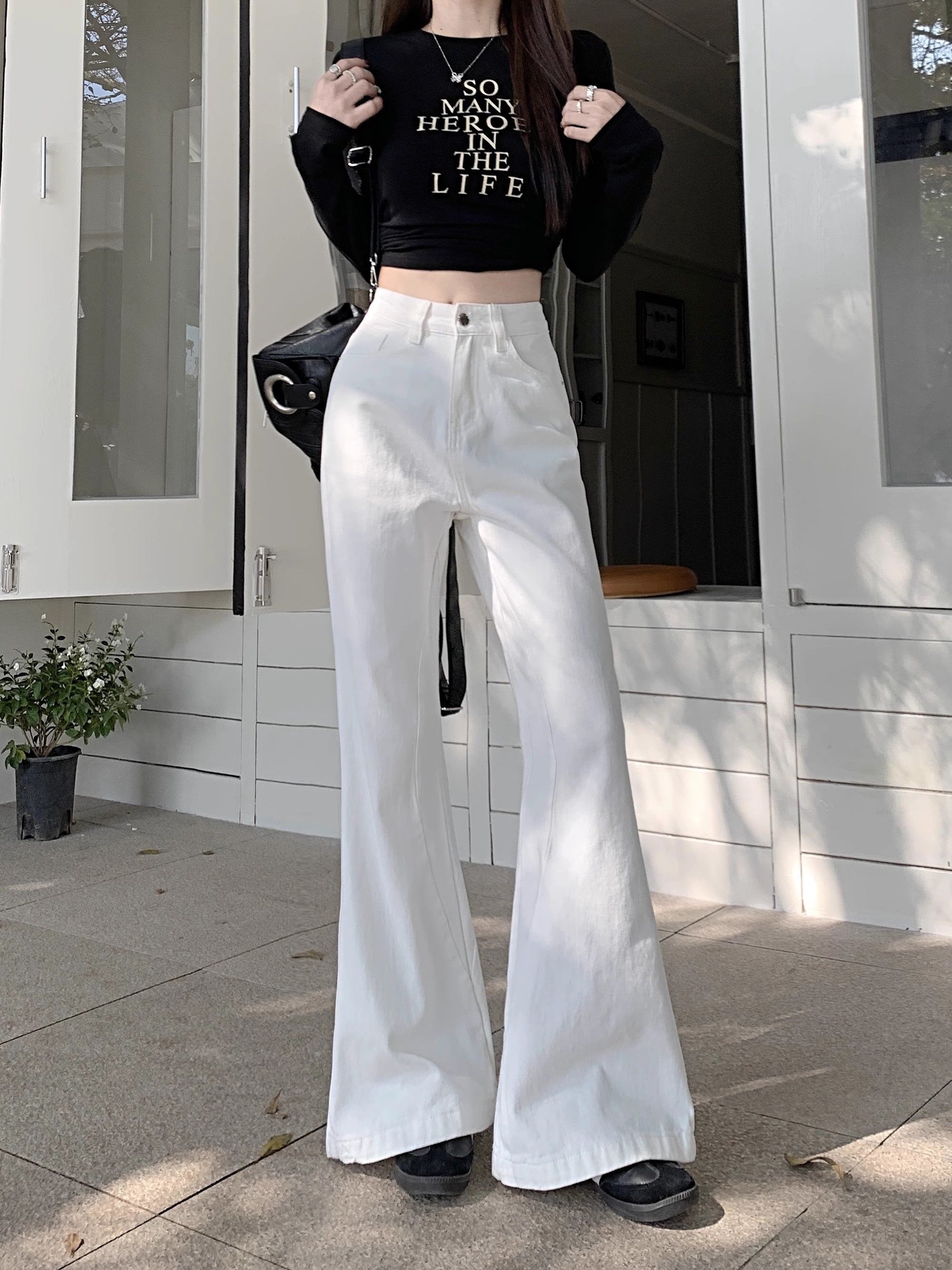 ホワイト デニムパンツ レディース 韓国 ファッション 白デニム ブーツカット デニム