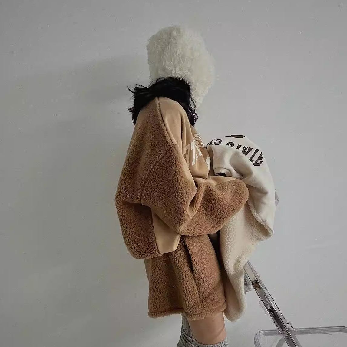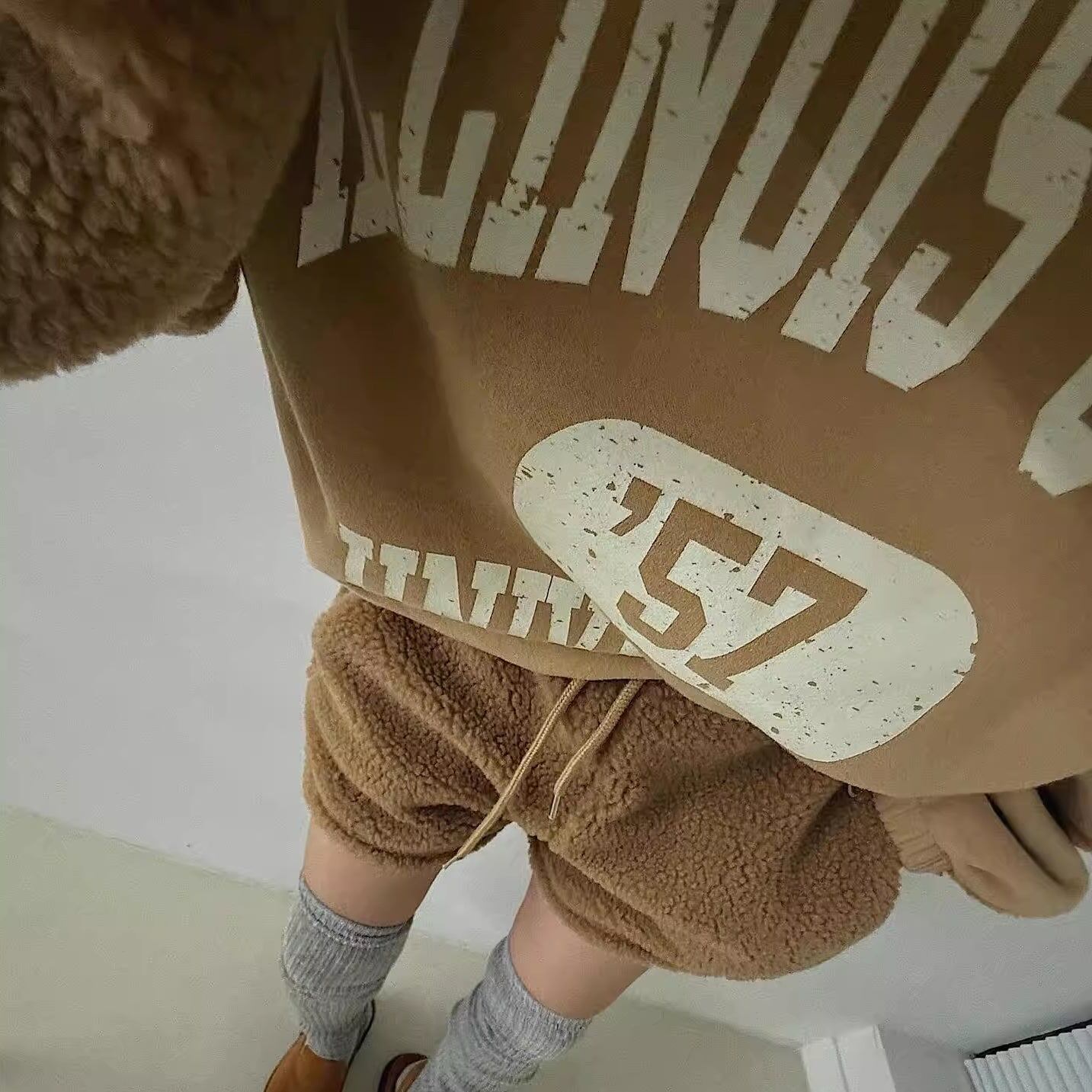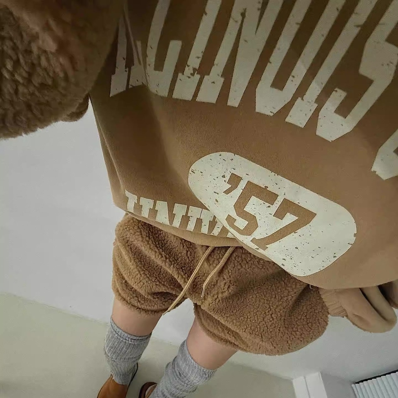ボア セットアップ レディース ボア切替 トレーナー ショートパンツ 上下セット レディース 韓国 ファッション ロゴプリント アメカジ オーバーサイズ コーデセット