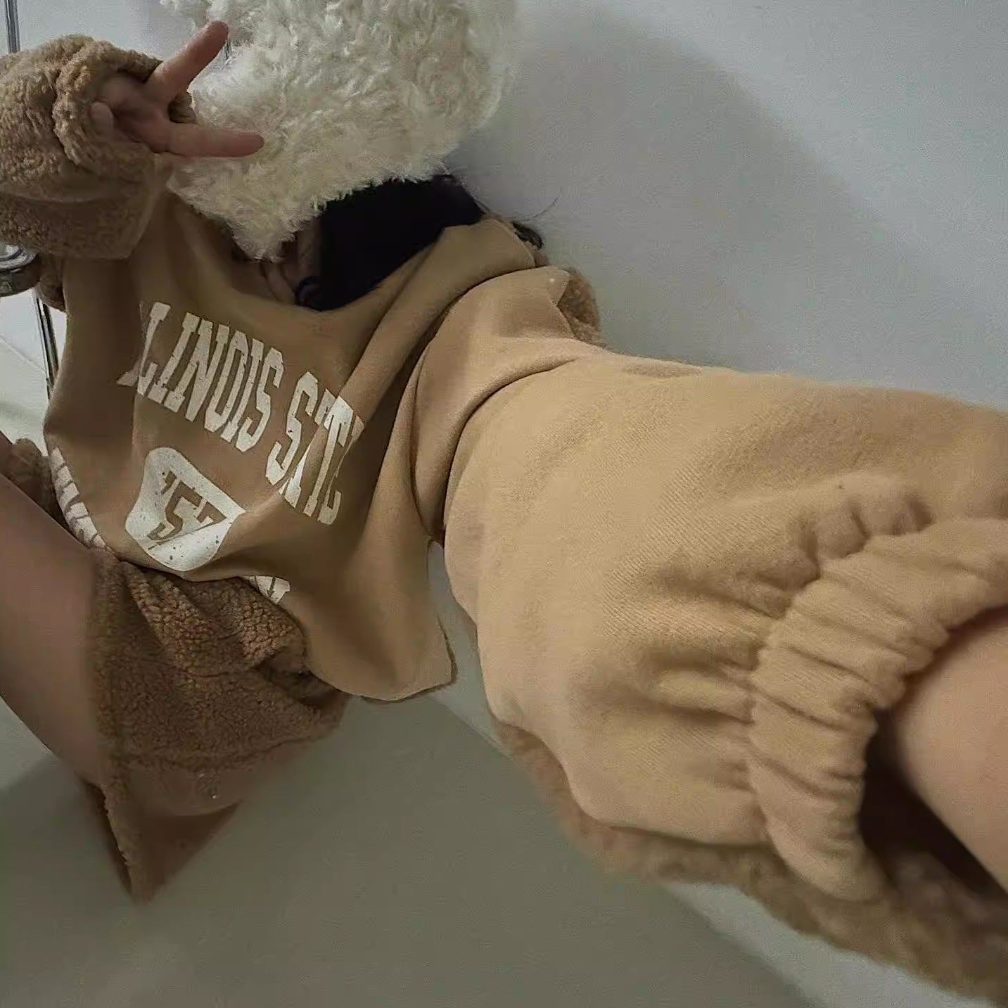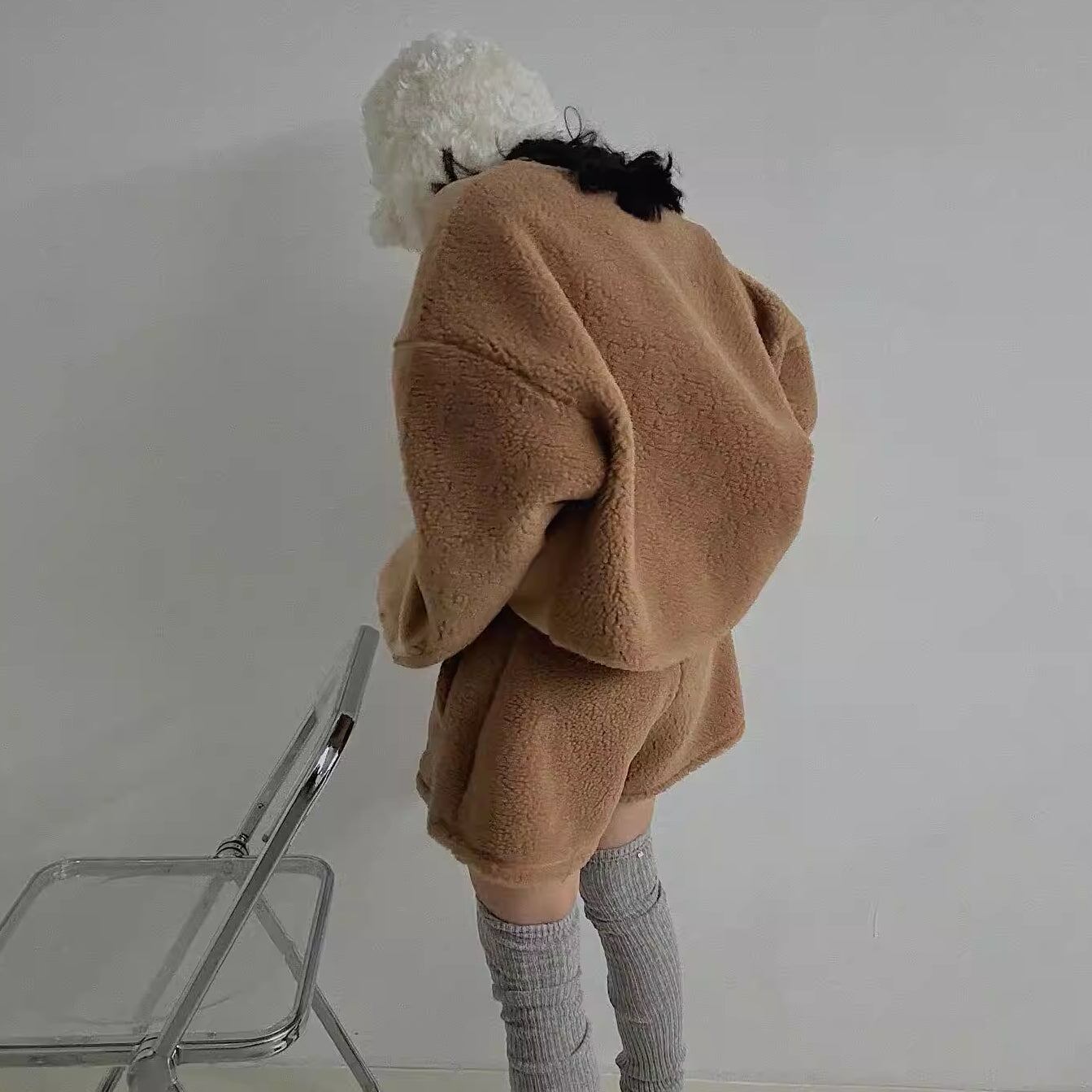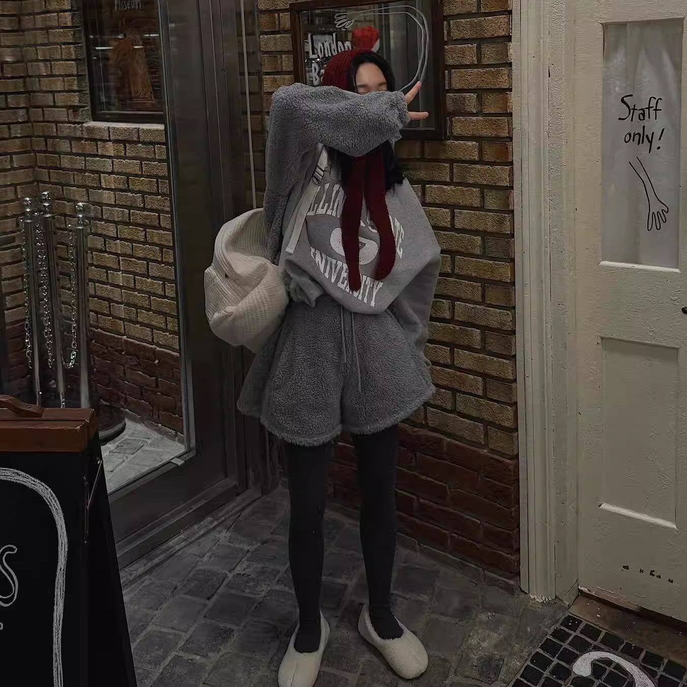 ボア セットアップ レディース ボア切替 トレーナー ショートパンツ 上下セット レディース 韓国 ファッション ロゴプリント アメカジ オーバーサイズ コーデセット