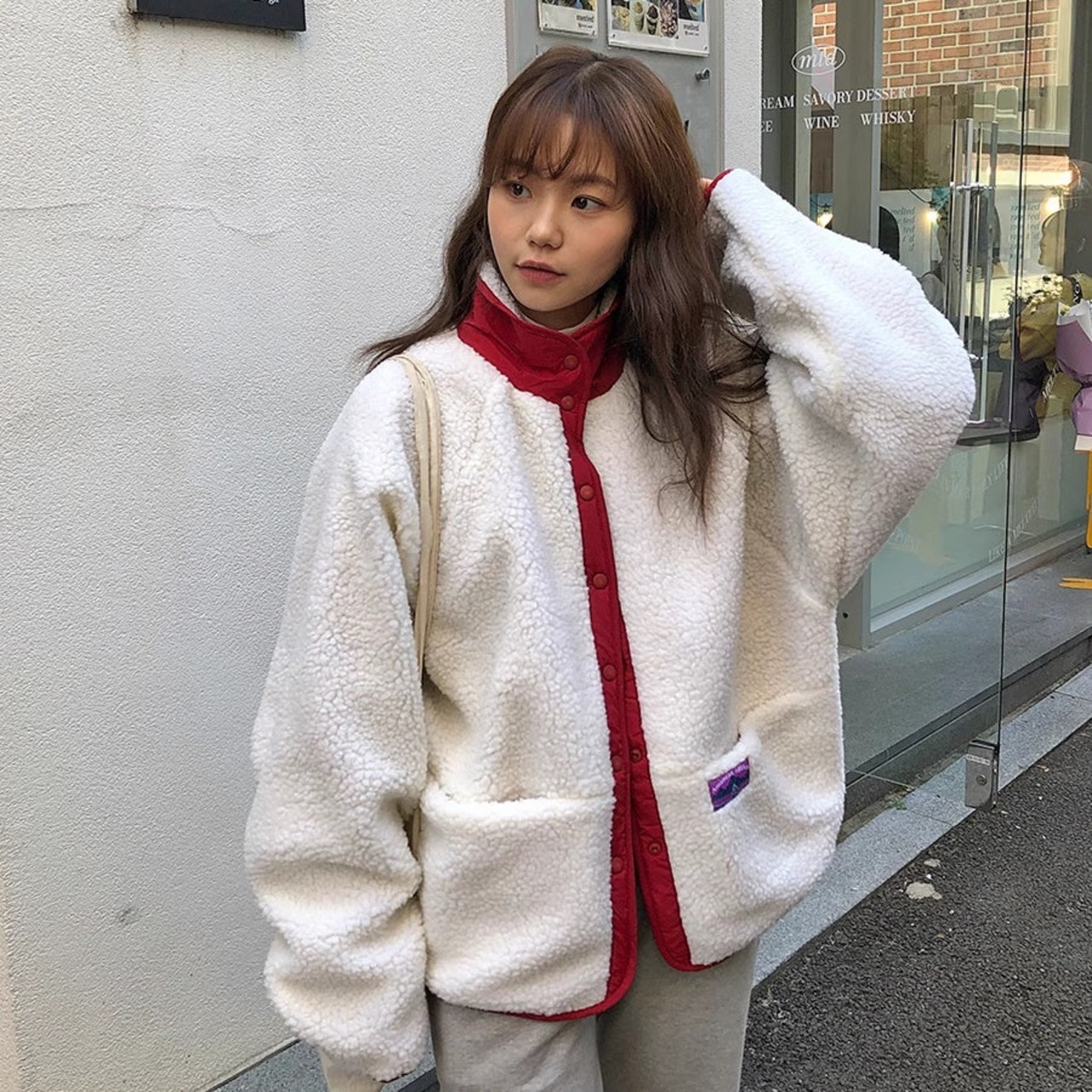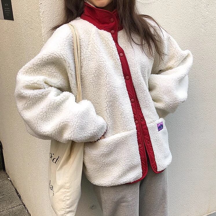 ボアジャケット リバーシブル レディース 韓国 ファッション 2way 冬アウター バイカラー 異素材ミックス おしゃれ カラフル ロゴパッチ