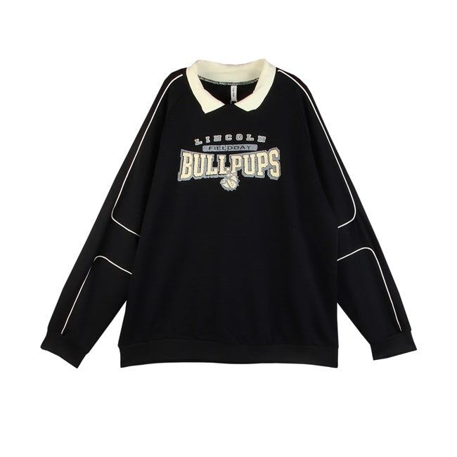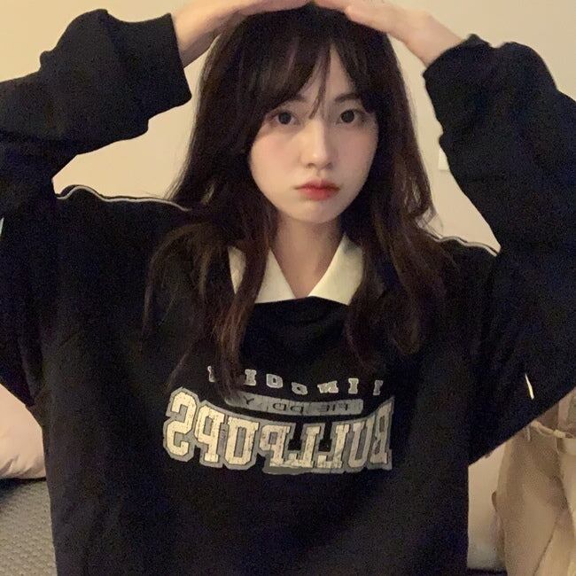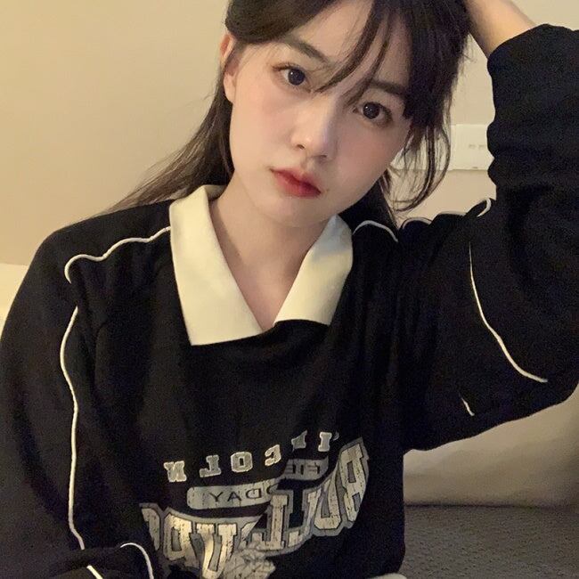 トレーナー ポロ襟 レディース 韓国 ファッション スウェット ロゴプリント 長袖 ポロシャツ
