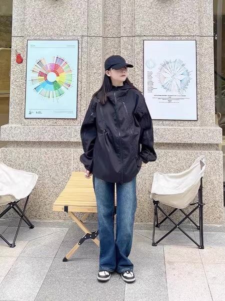 マウンテンパーカー レディース 韓国 ファッション オーバーサイズ ナイロンジャケット