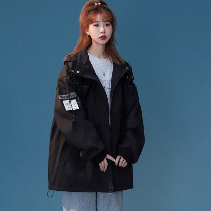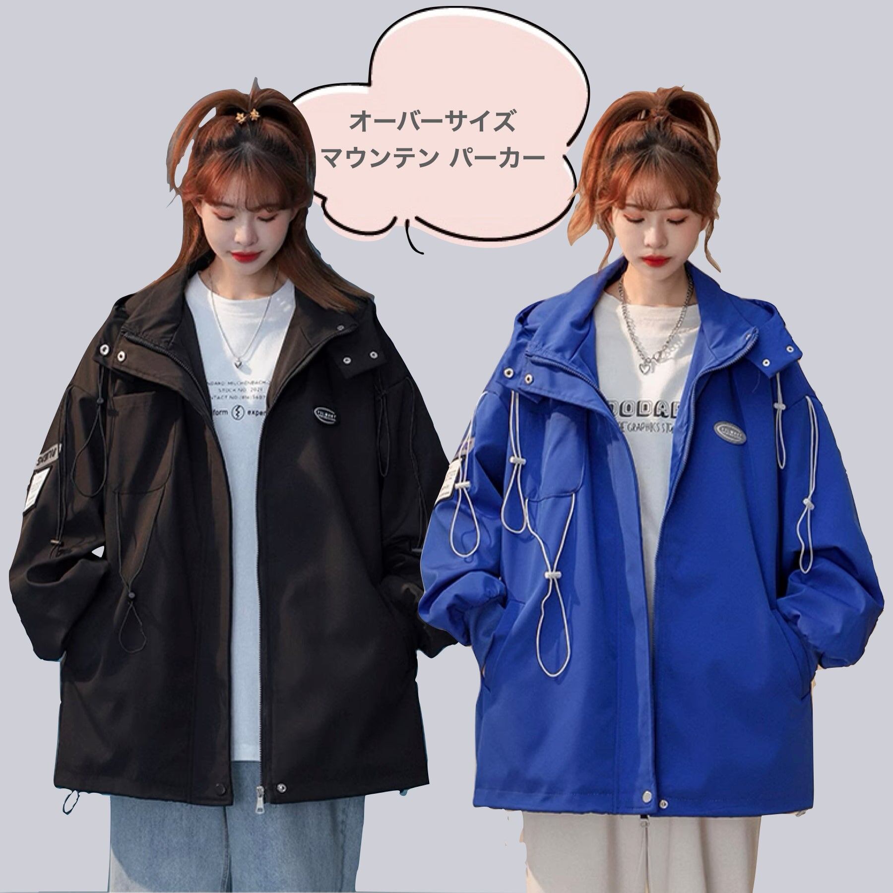 マウンテンパーカー レディース 韓国 ファッション オーバーサイズ ナイロンジャケット パーカー 秋冬アウター スポーティ