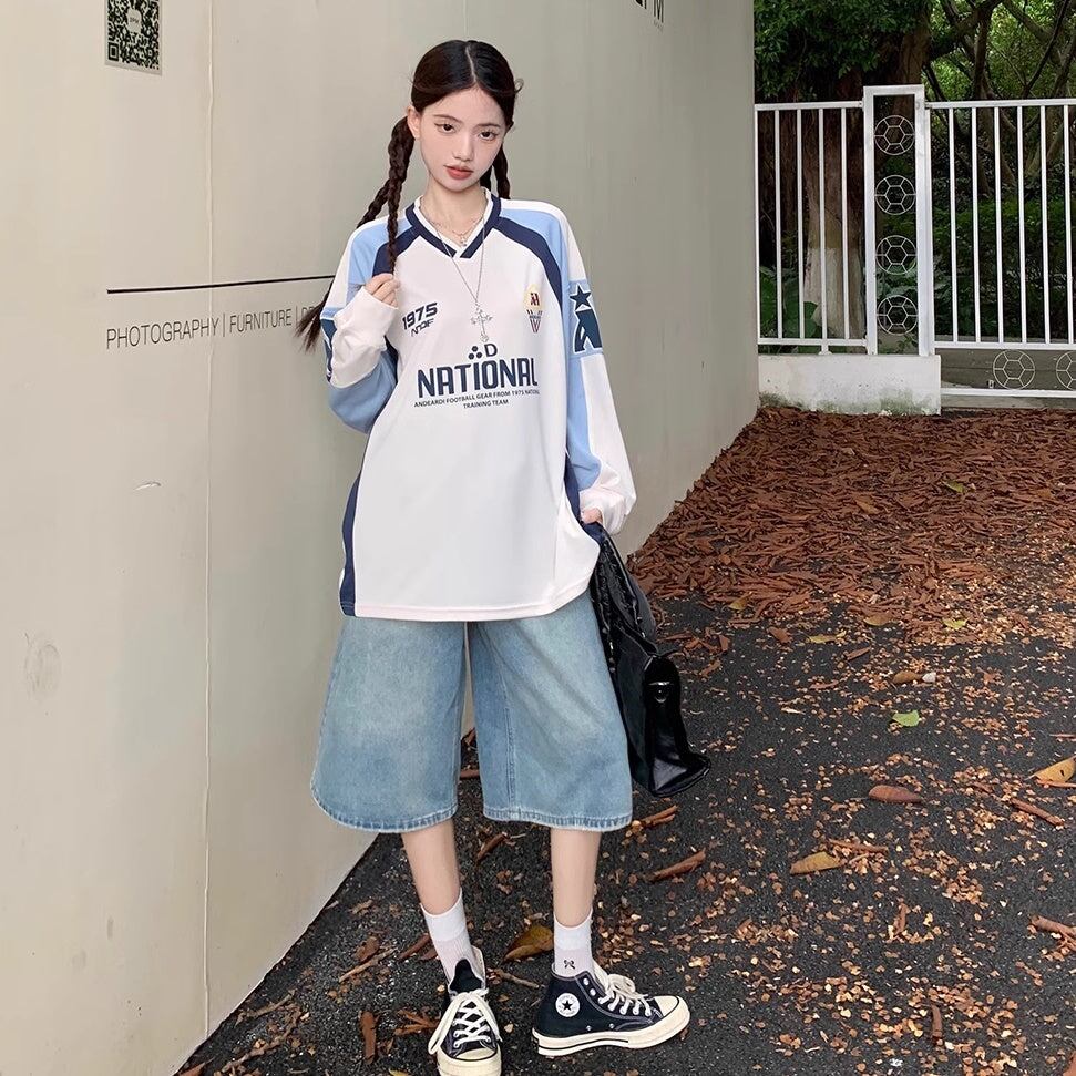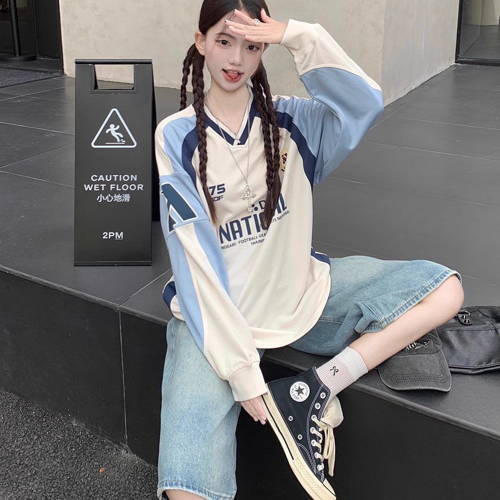ユニフォーム ロンT レディース 韓国 ファッション 長袖 ナンバー ロゴ オーバーサイズ スポーティー トップス