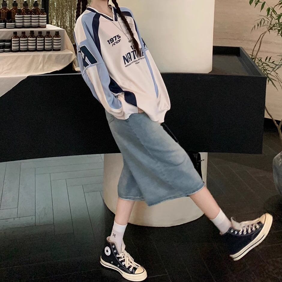 長袖シャツ レディース 韓国 ファッション ナンバーロゴ バックシャン バックプリント 袖ライン 薄手トレーナー かわいい オーバーサイズ