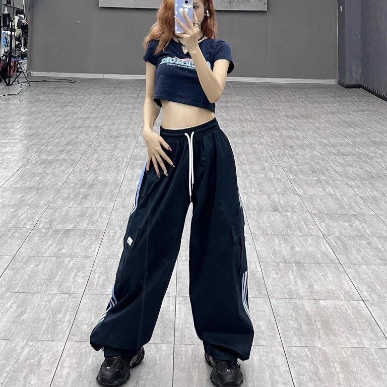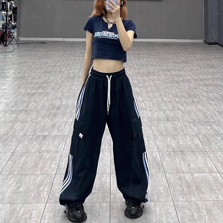 ライン ジャージ カーゴパンツ レディース 韓国 ファッション サイドライン ワイドパンツ サイドポケット