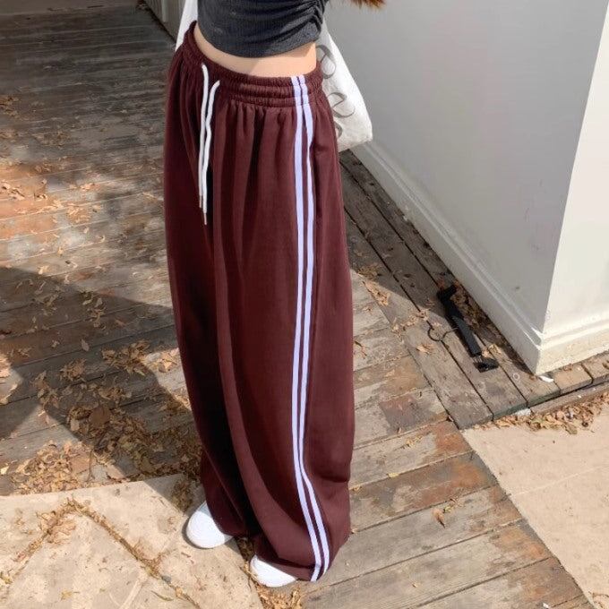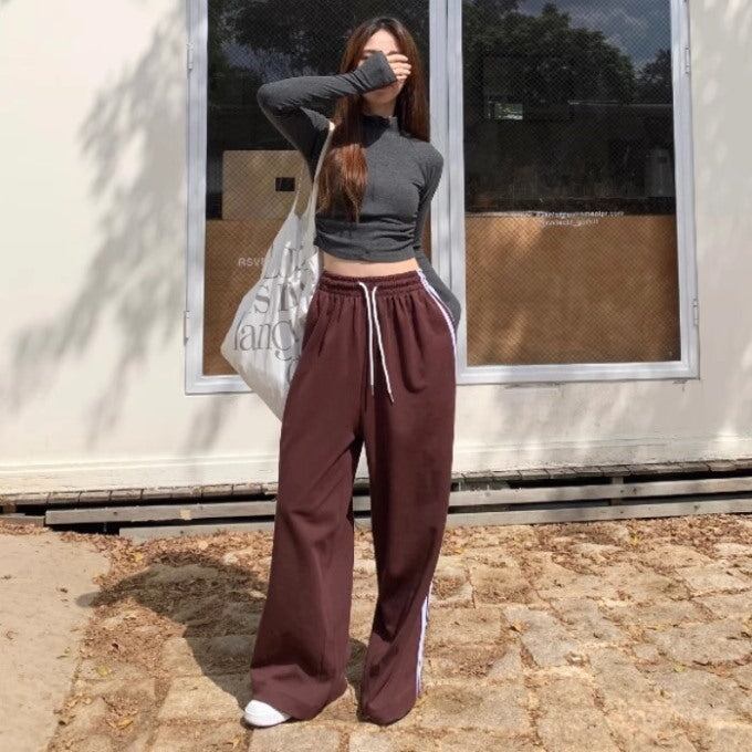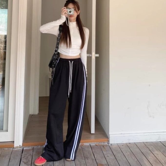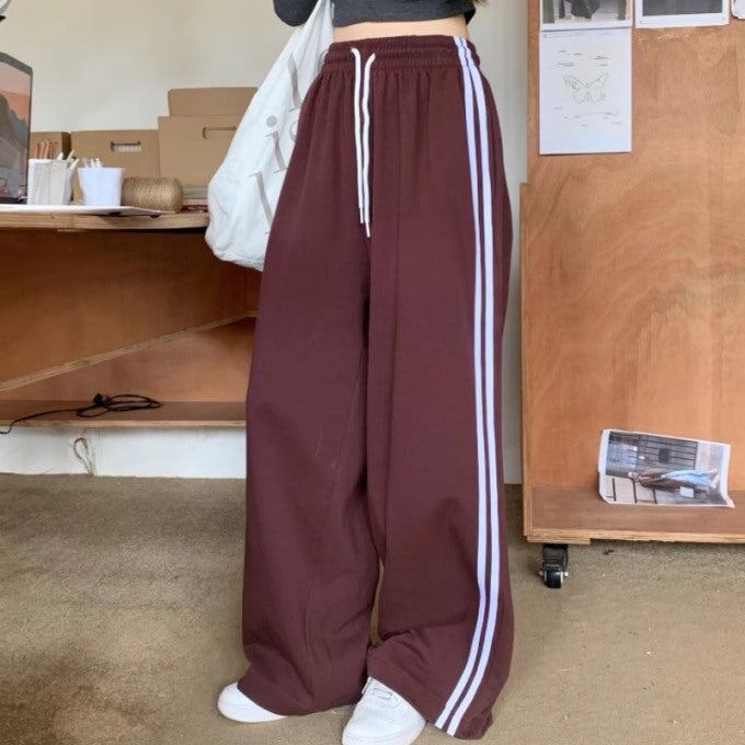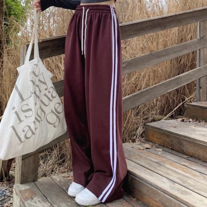 ライン ジャージパンツ レディース 韓国 ファッション サイドライン ワイドパンツ スポーツウェア