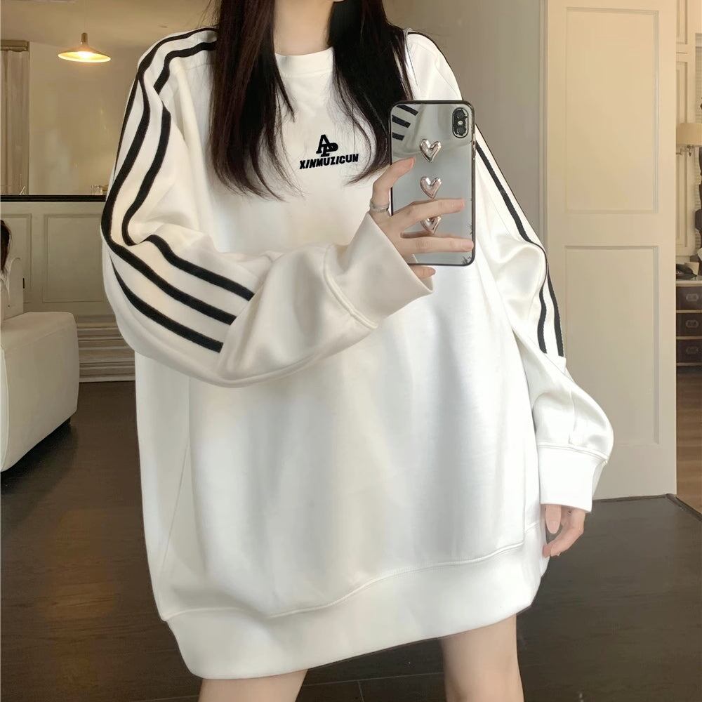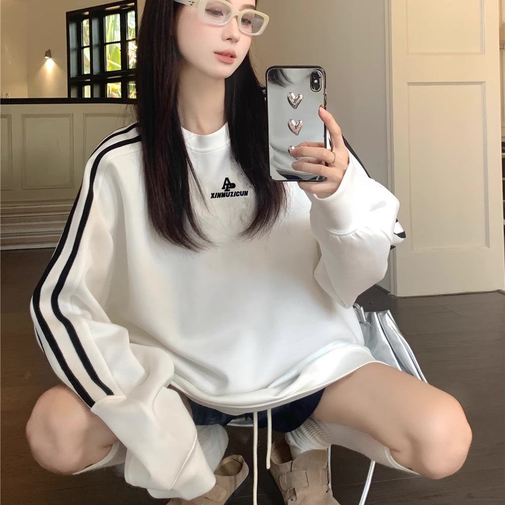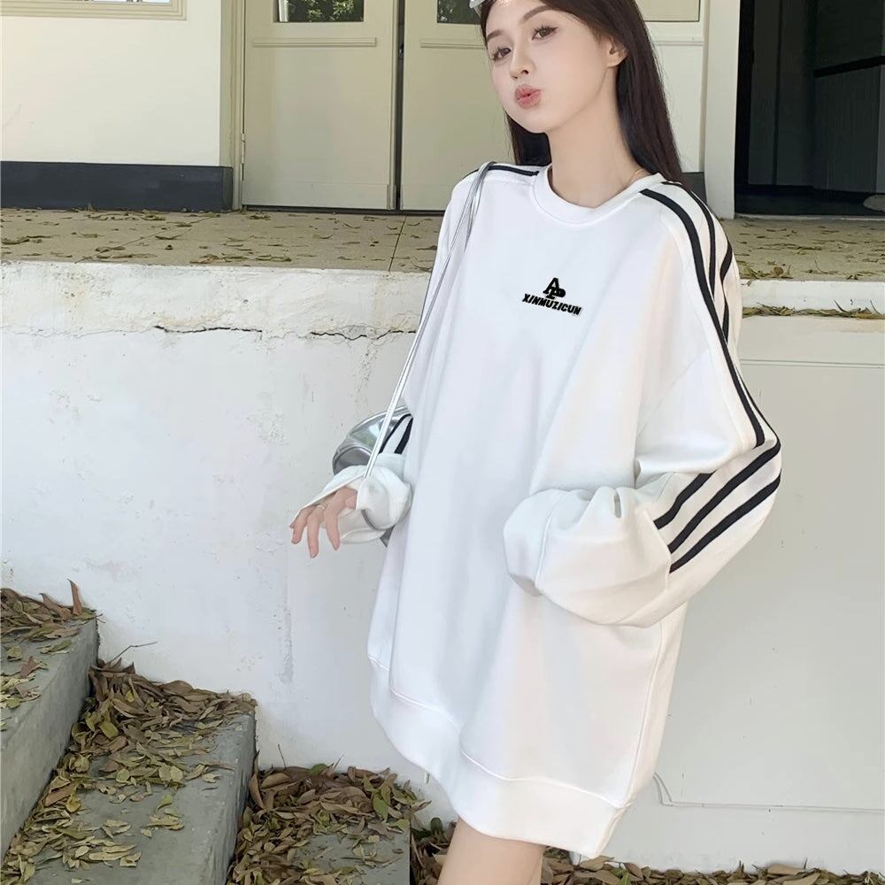 トレーナー 袖ライン レディース 韓国 ファッション ロゴ 白トレーナー スウェット 秋冬? 長そで トップス ロゴ