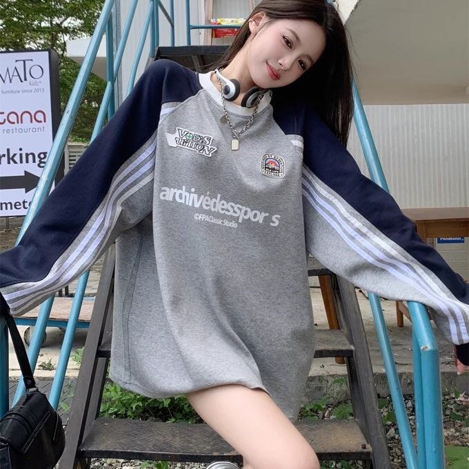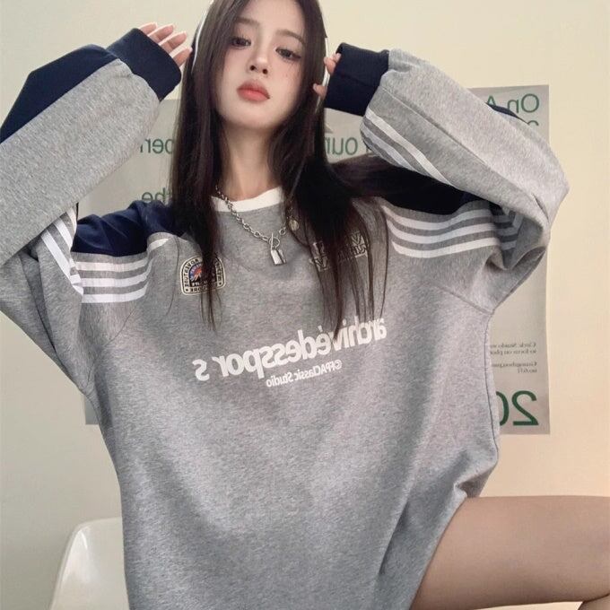 ライン スポーツ トレーナー レディース 韓国 ストリート ファッション ロゴ 袖ライン オーバーサイズ スウェット 秋冬 トップス