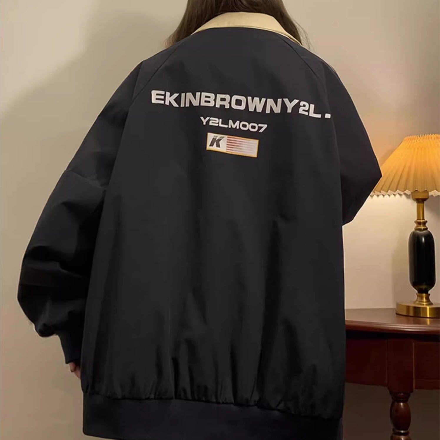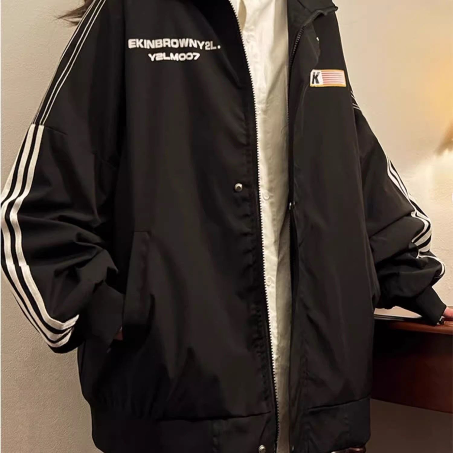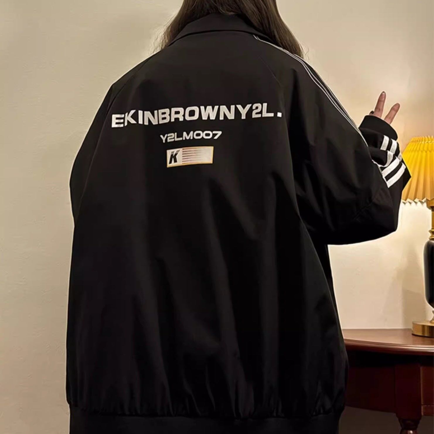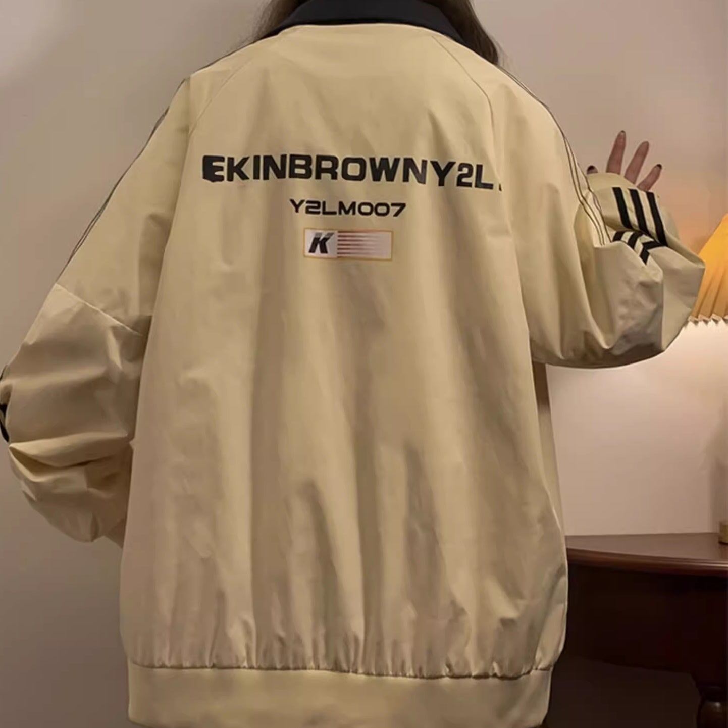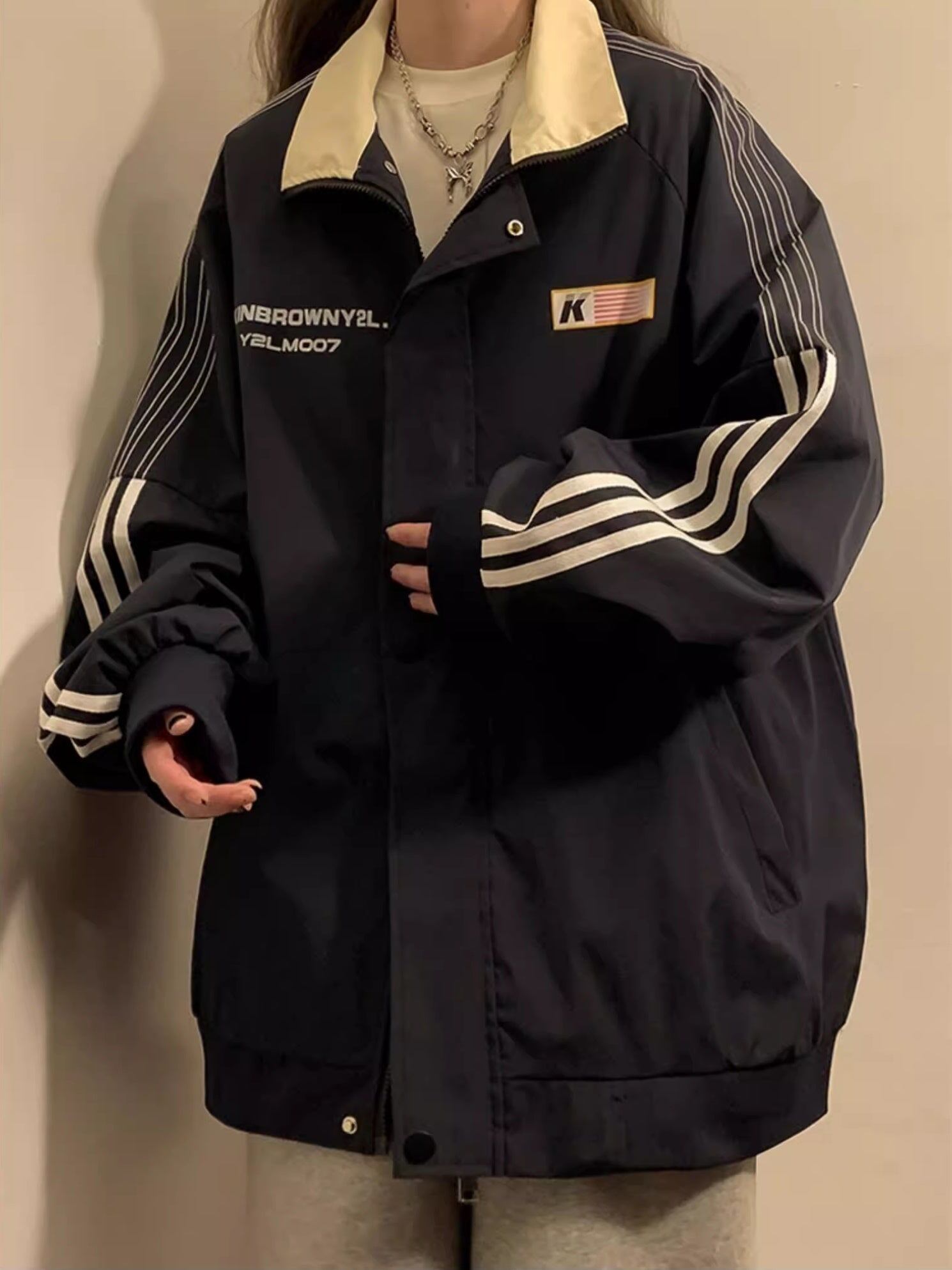 ジップジャケット レディース 韓国 ファッション バックプリント 袖ライン サイズ豊富 大きいサイズ