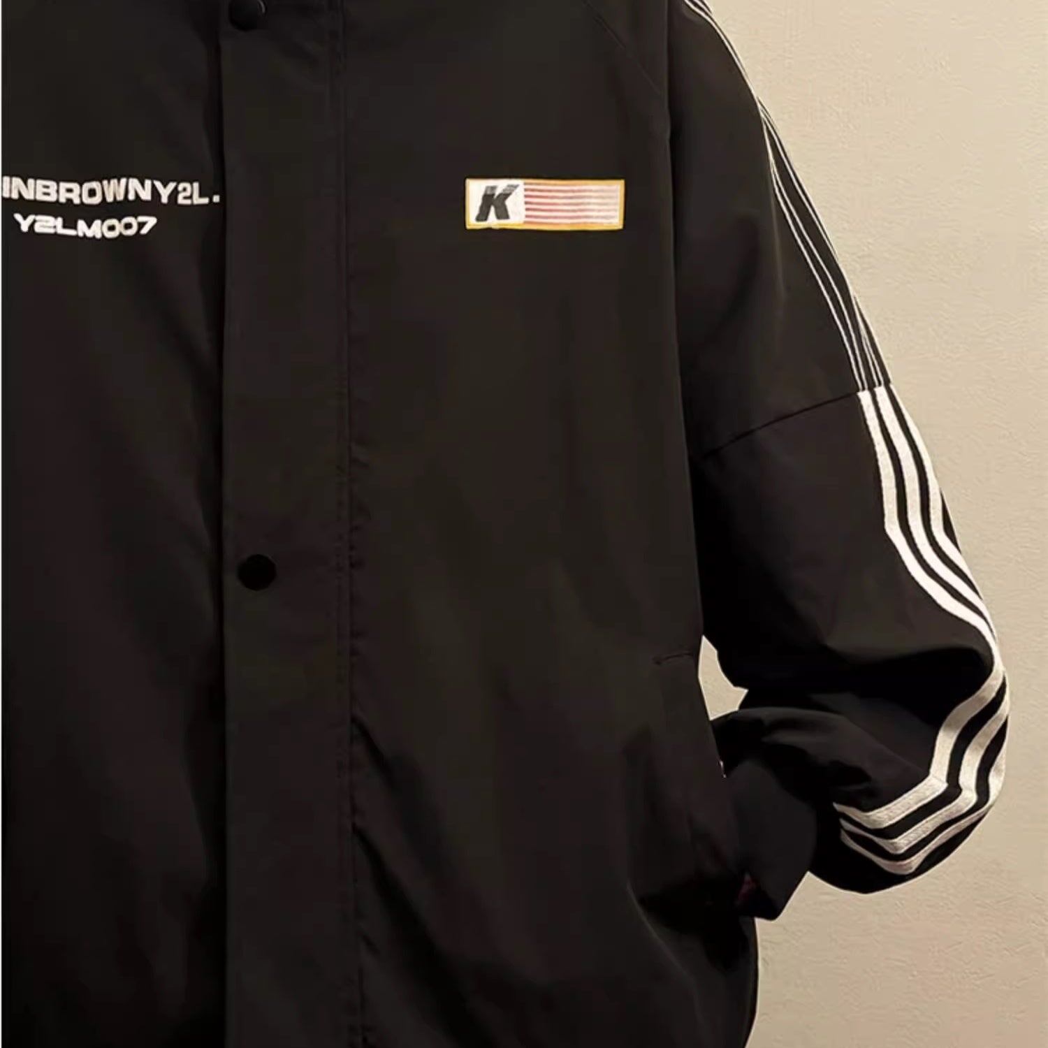 ライン ナイロン ジャケット レディース 韓国 ファッション バックプリント ロゴ ブルゾン