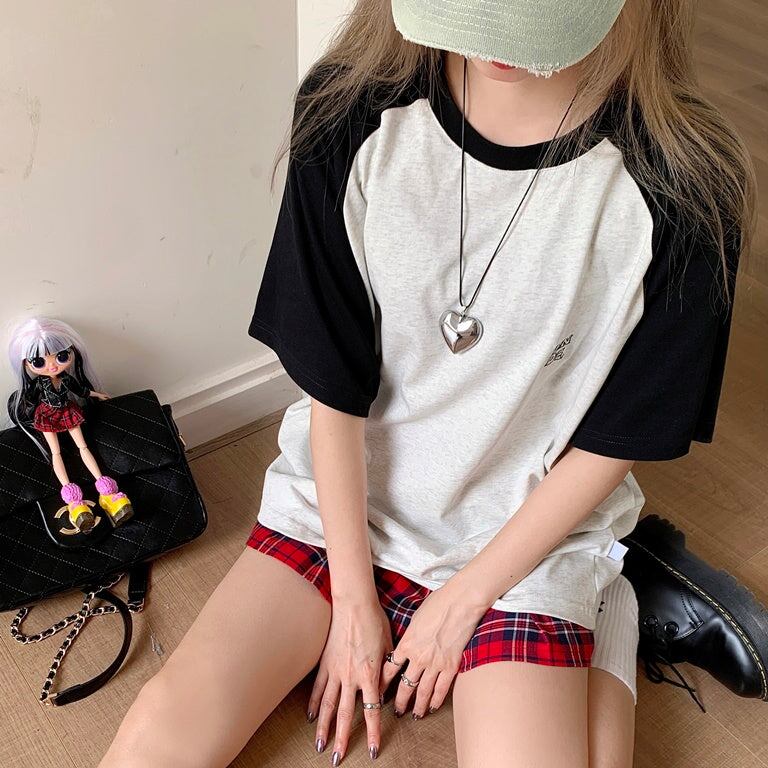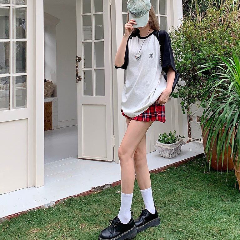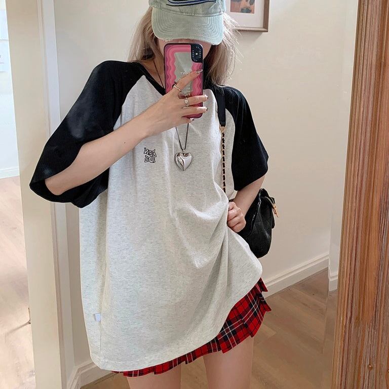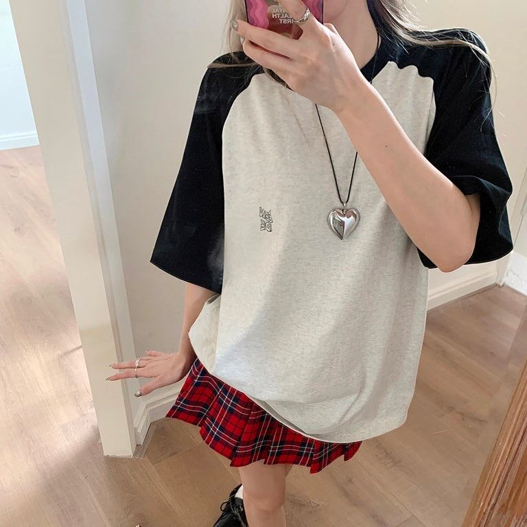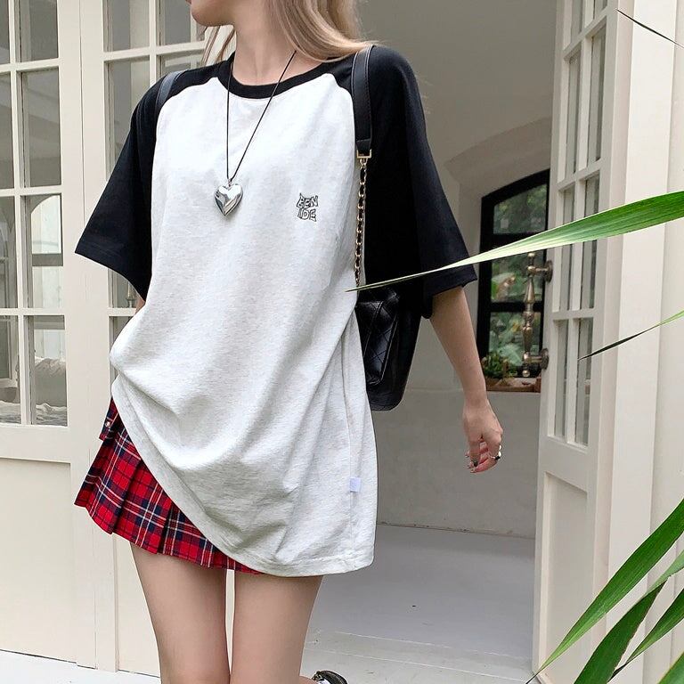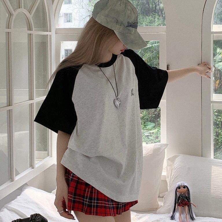 ラグラン Tシャツ 半袖 レディース 韓国 ファッション 夏 トップス ビッグT オーバーサイズ メンズライク スポーツミックス