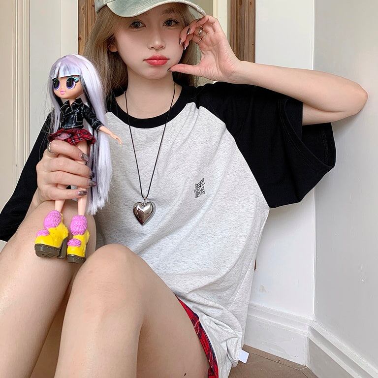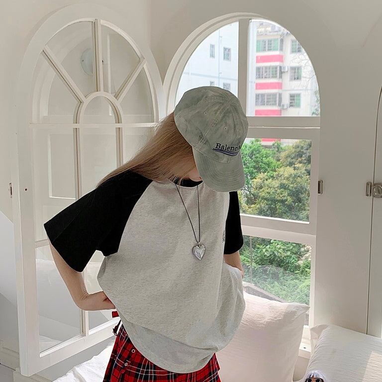 ラグラン Tシャツ レディース 韓国 半袖 ワンポイント ロゴ ビッグシルエット 夏 トップス