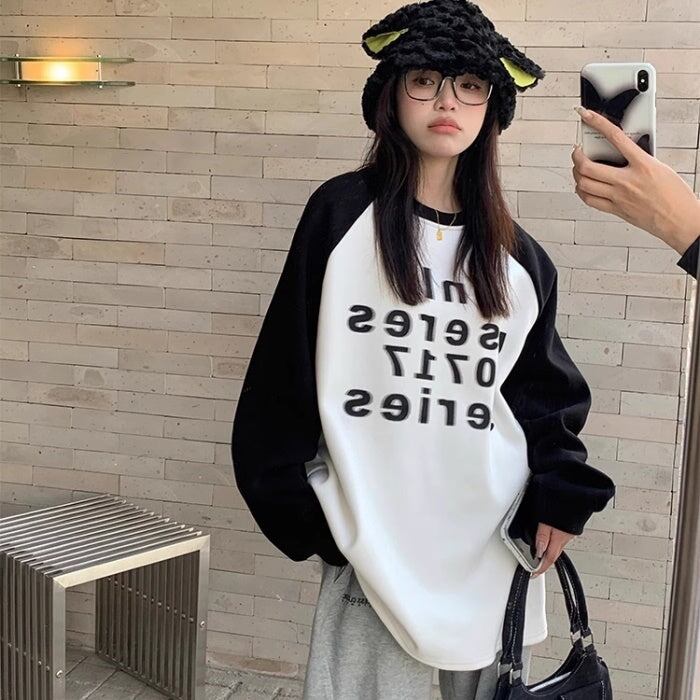 トレーナー スウェット レディース 韓国 ファッション メッセージロゴ ラグラン リンガー オーバーサイズ