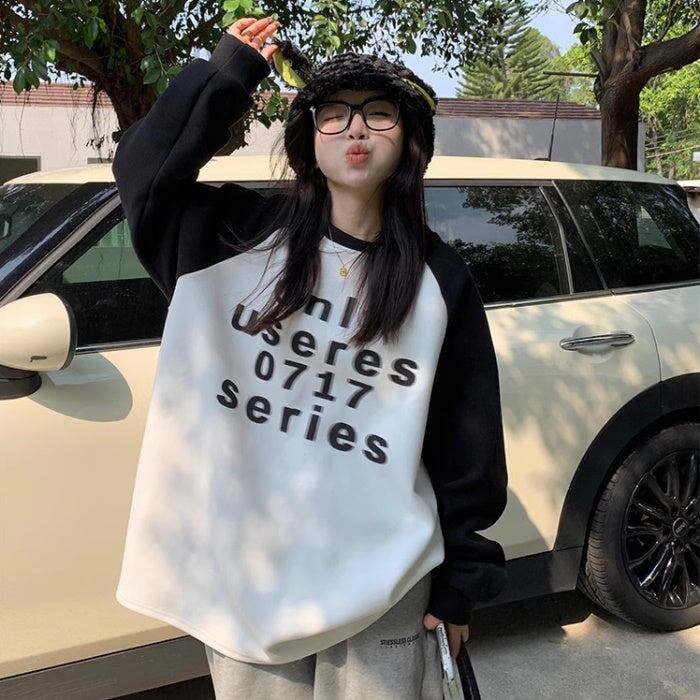 ラグラン スウェット トレーナー レディース ビッグシルエット ロゴ 秋冬 トップス 韓国 ファッション メッセージロゴ オーバーサイズ