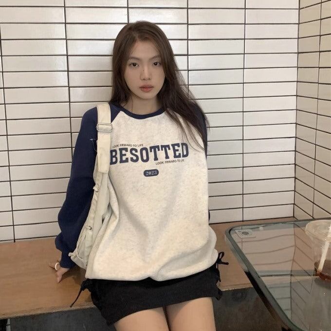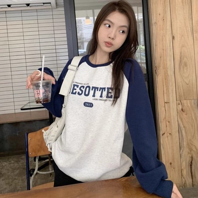 ラグラン スウェット トレーナー レディース 韓国 ファッション ロゴ オーバーサイズ トップス 秋冬