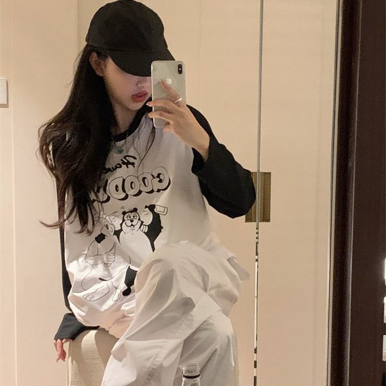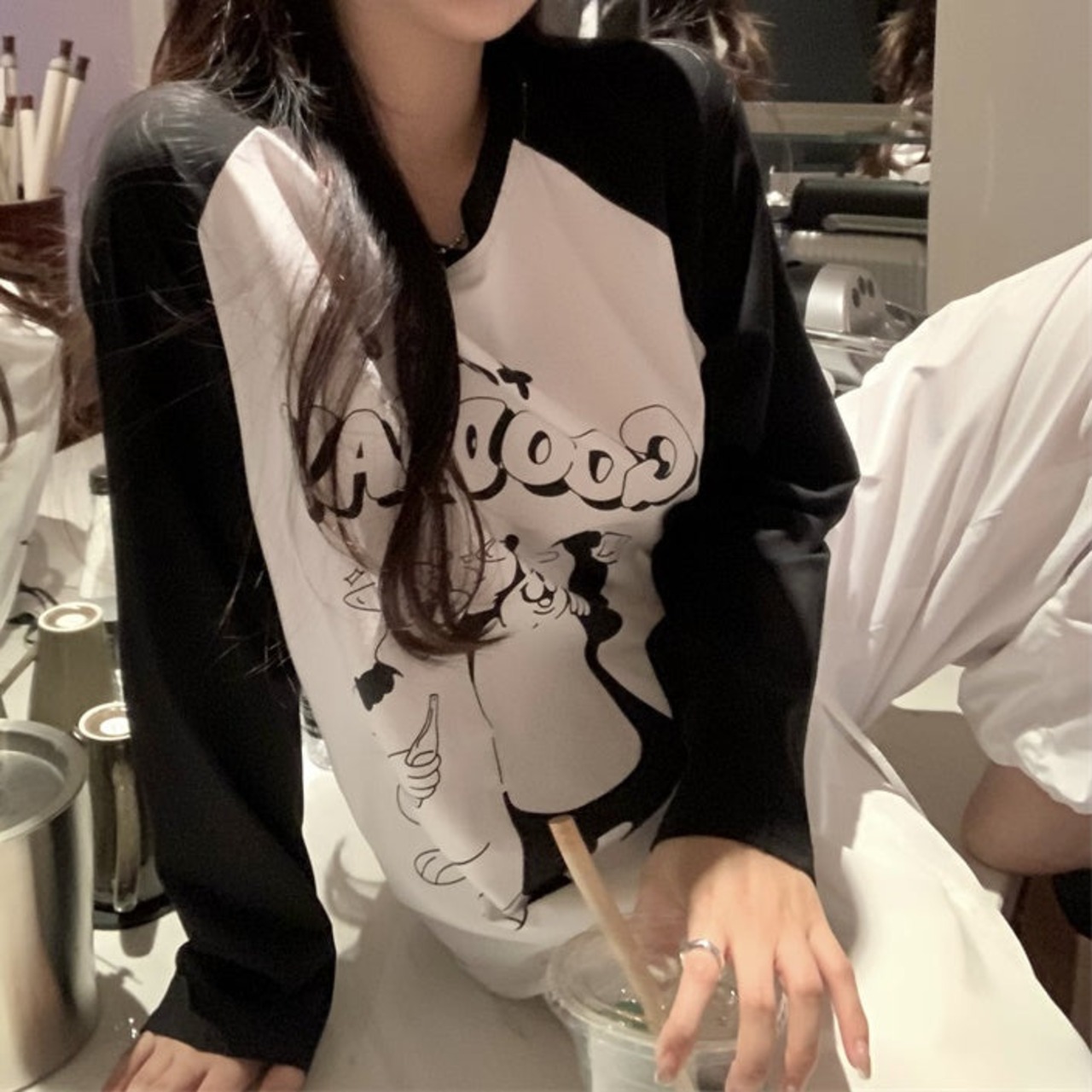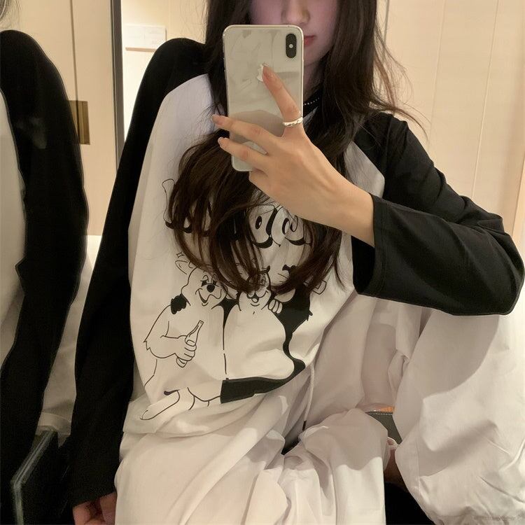 ラグラン ロンT レディース 韓国 ファッション バイカラー キャラプリント ビッグシルエット ロンT