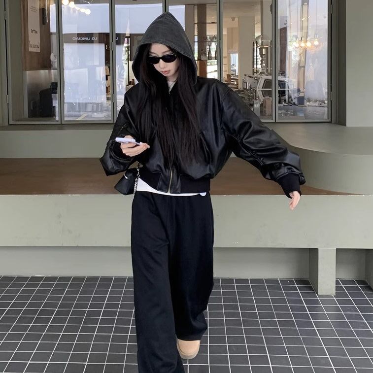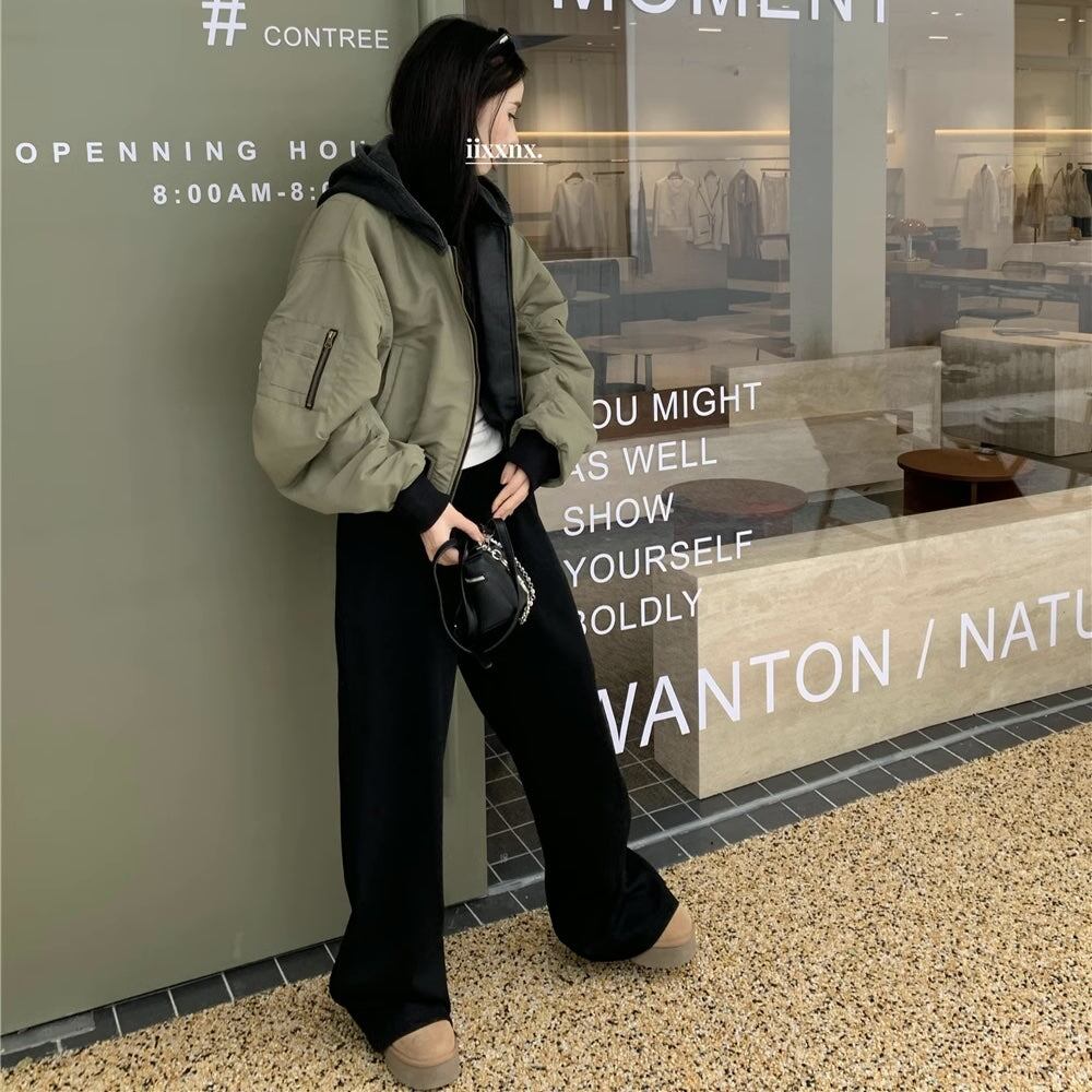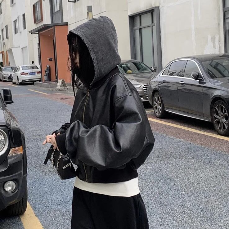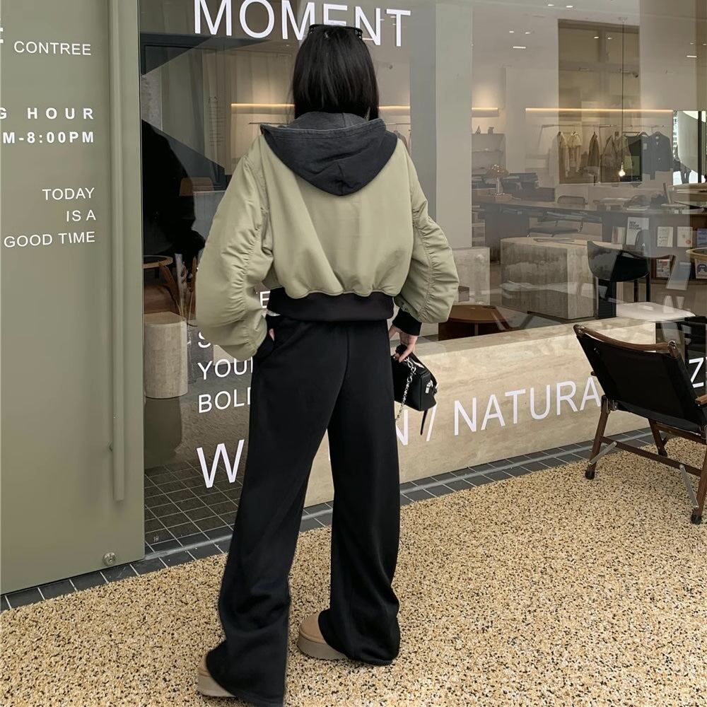 ブルゾン レディース 韓国 ファッション 異素材ミックス リバーシブル パーカー 袖ポケット フードジャケット ジップパーカー クロップ丈 クロップジャケット ジップブルゾン
