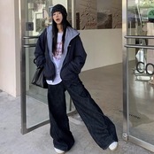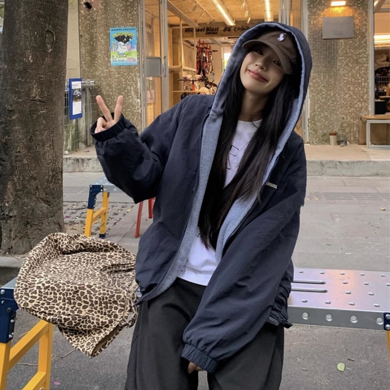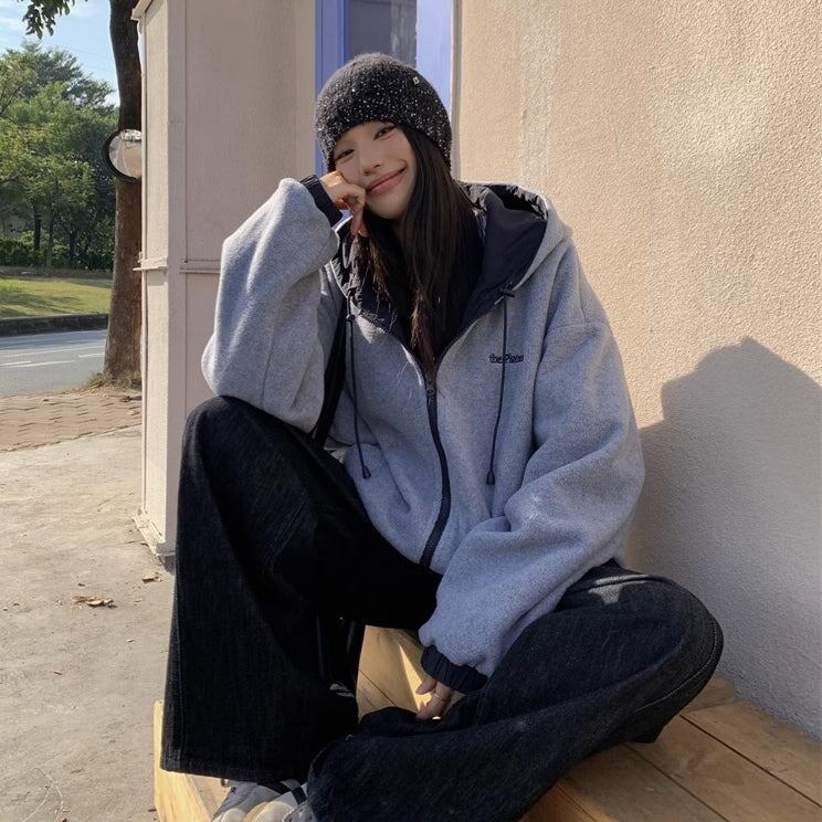 リバーシブル パーカー マイロン ジャケット レディース 韓国 アウター ファッション ジップアップ オーバーサイズ フーディー