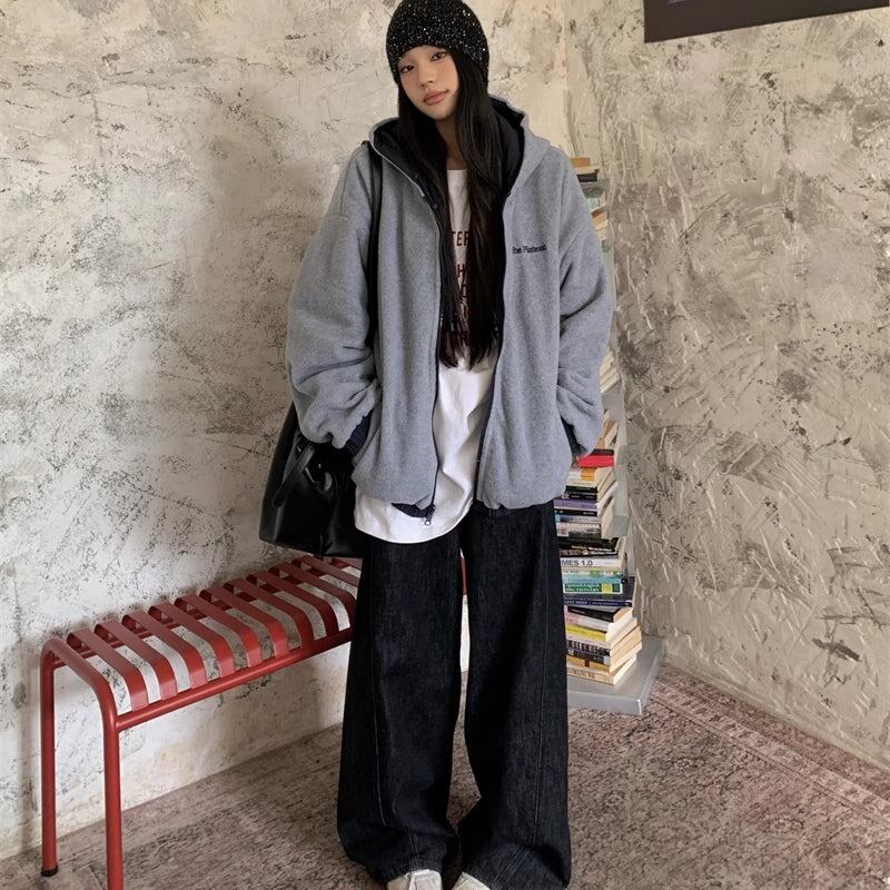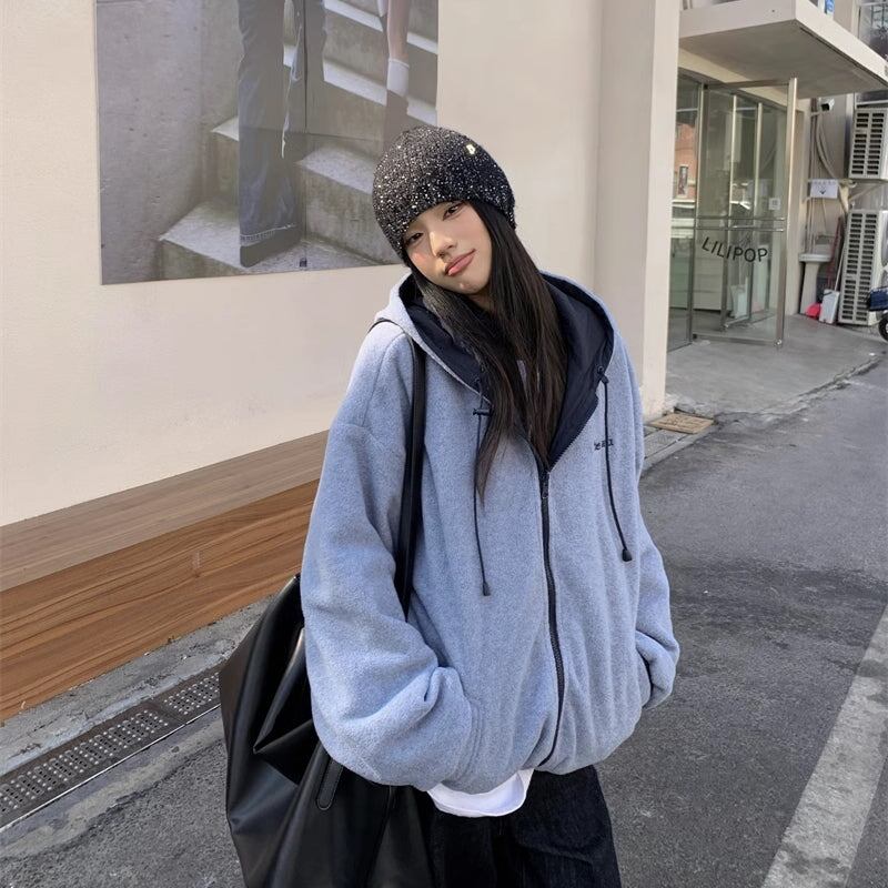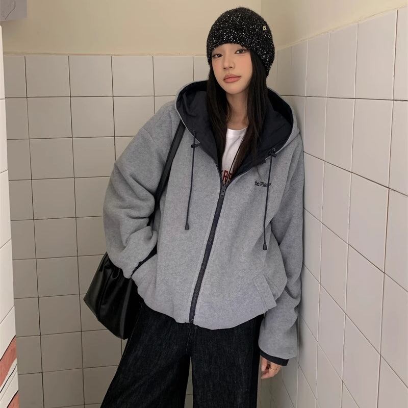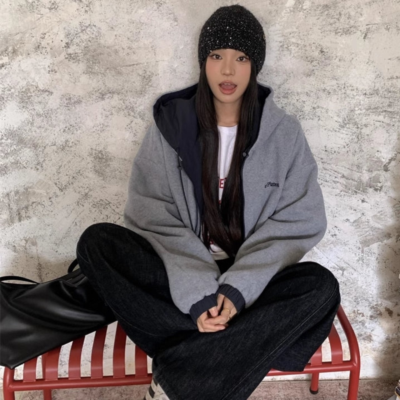 パーカー ジャケット リバーシブルアウター レディース 韓国 ファッション ジップパーカー シンプル 無地 ロゴ
