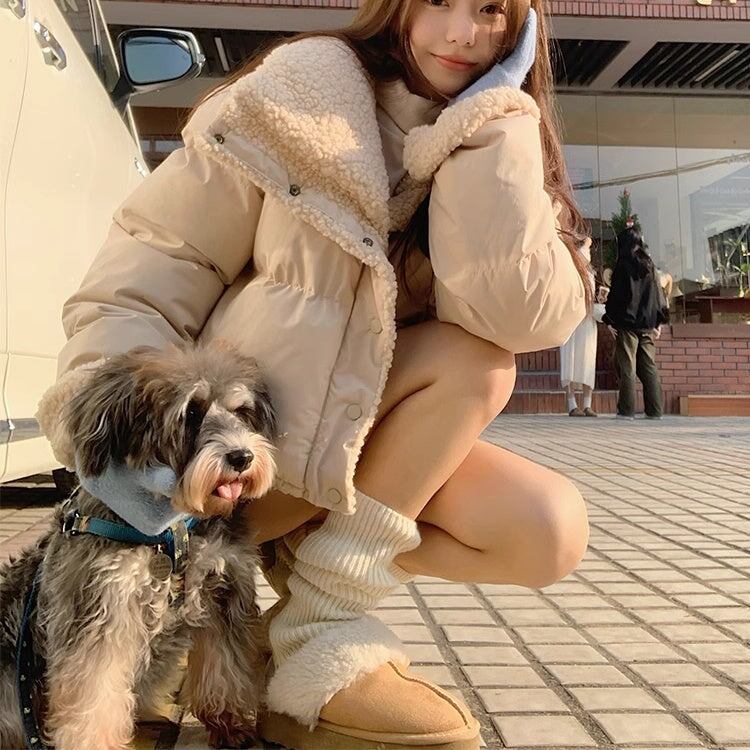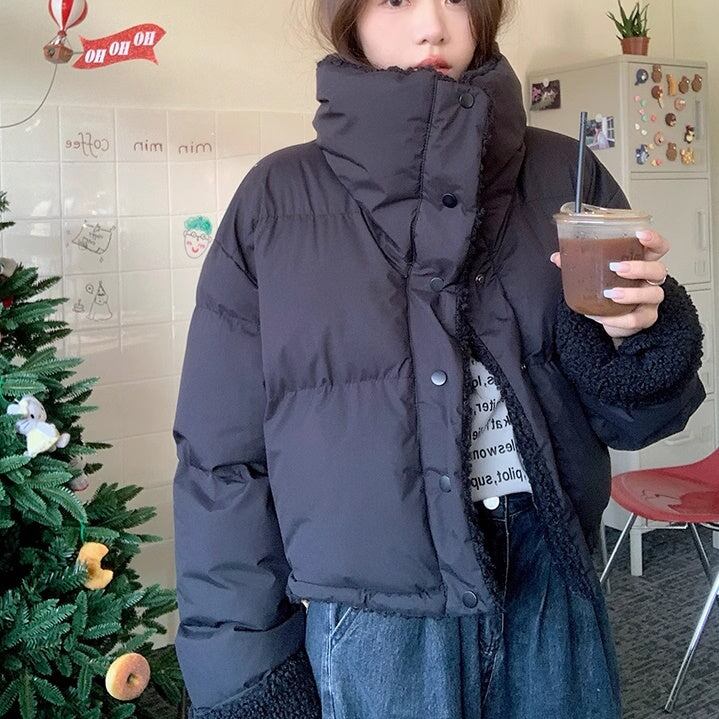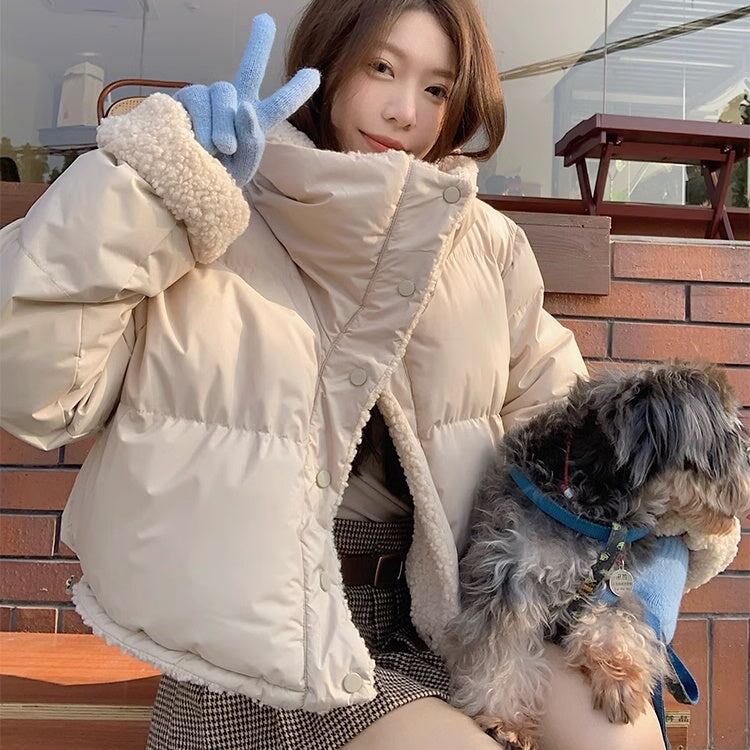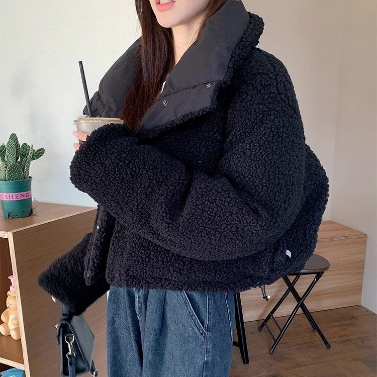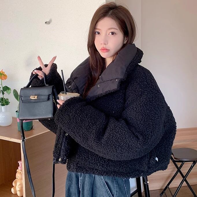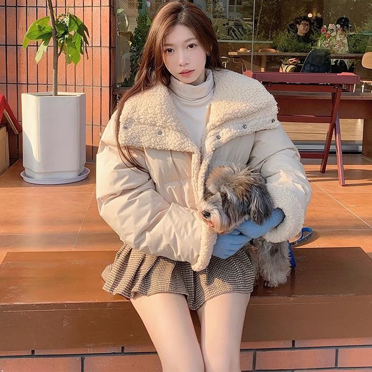ボアジャケット レディース 韓国 ファッション リバーシブル 2way 中綿 ふんわり もこもこ 内ボア 襟ボア かわいい ガーリー