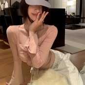 ロングスリーブのフレア袖がエアリーなクロップトップです♪