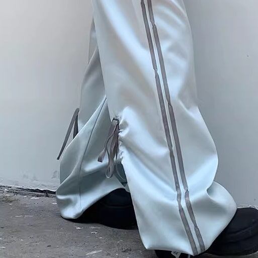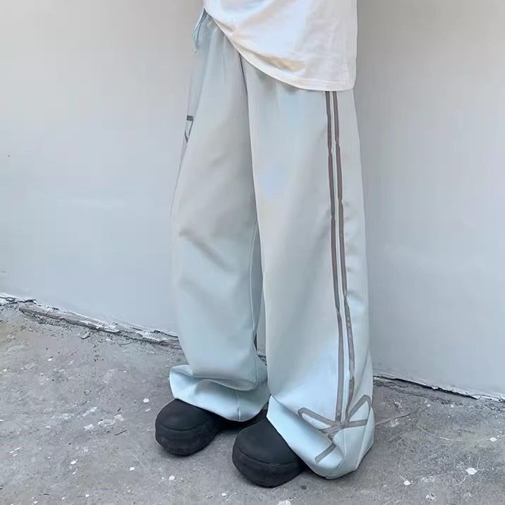 リボンライン ナイロンパンツ レディース 韓国 ファッション ライン ワイド ジャージパンツ