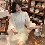 刺繍ワンピース レディース 韓国 ファッション 白ワンピ 清楚 上品 ガーリー 春 シフォン すけ感 ミニフレアワンピ かわいい