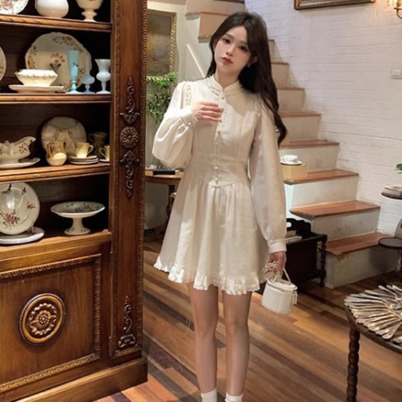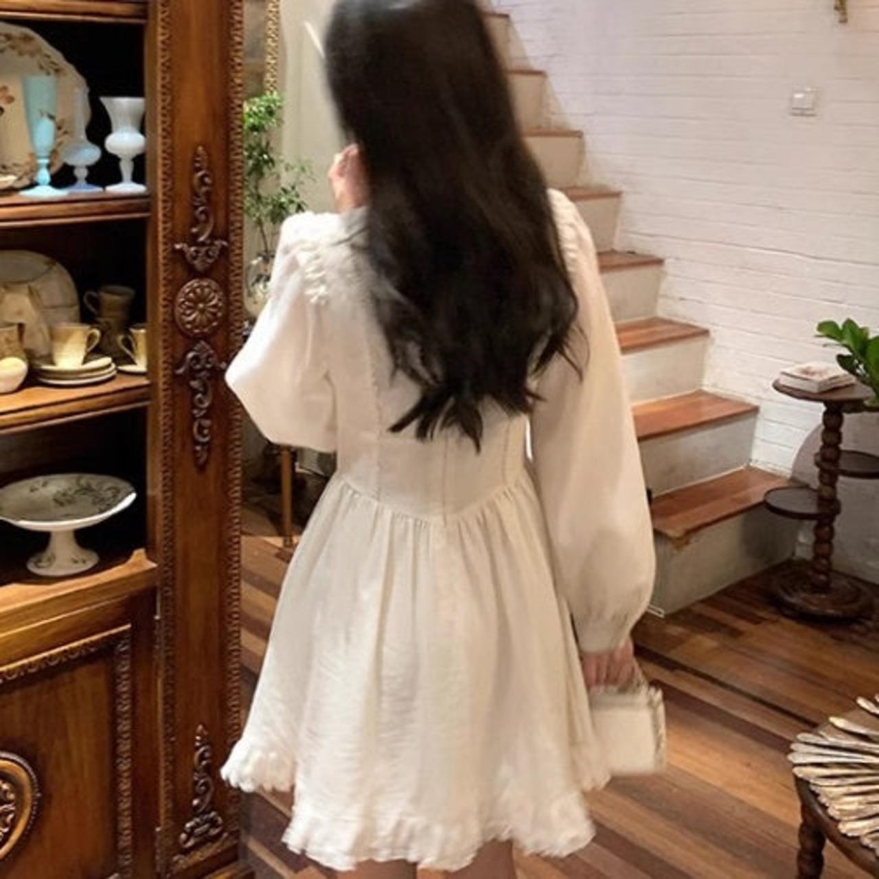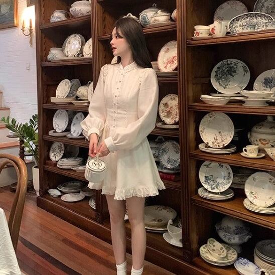 レース ミニワンピース レディース 韓国 ファッション 白ワンピ 清楚 上品 ガーリー 春夏 フレア ワンピ