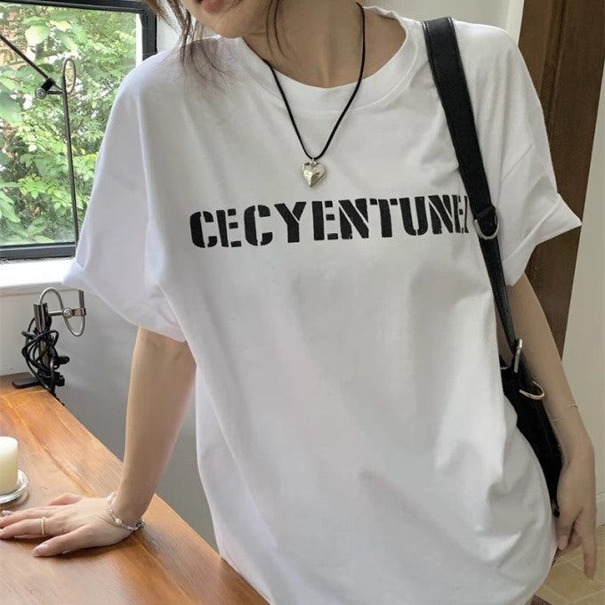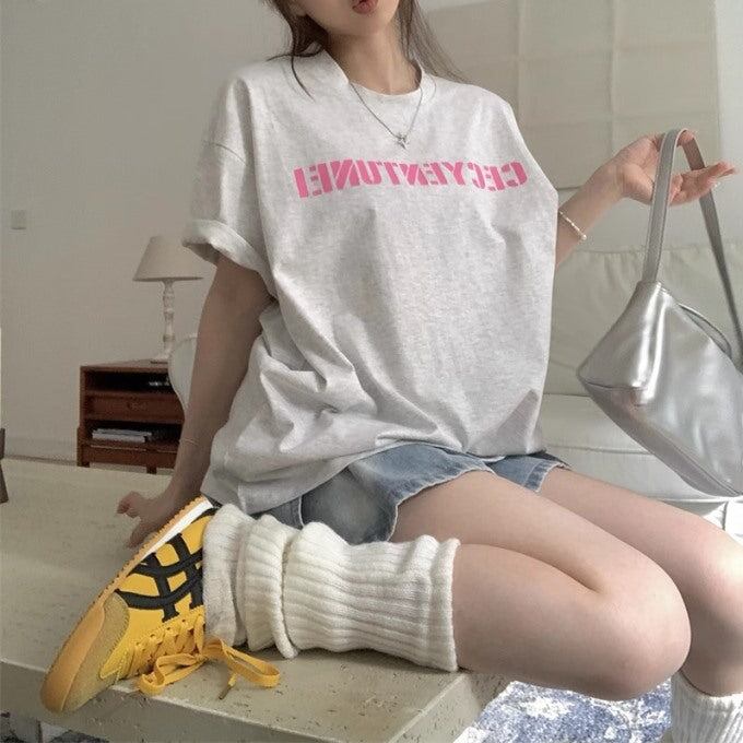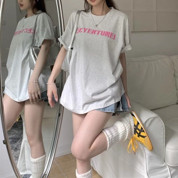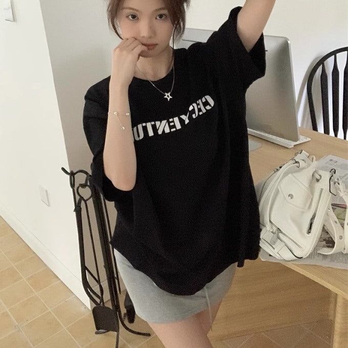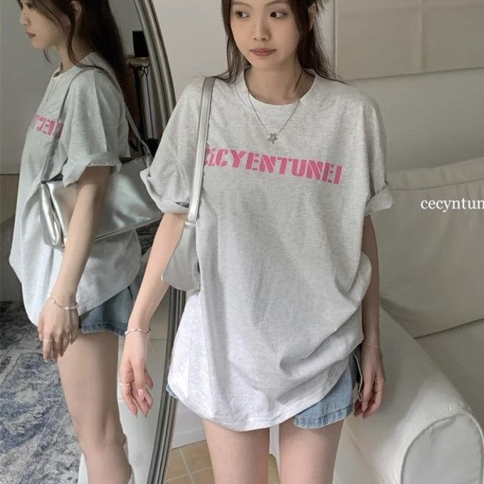 ロゴ Tシャツ レディース 韓国 ストリート ビッグシルエット ロゴグラフィック T 夏トップス