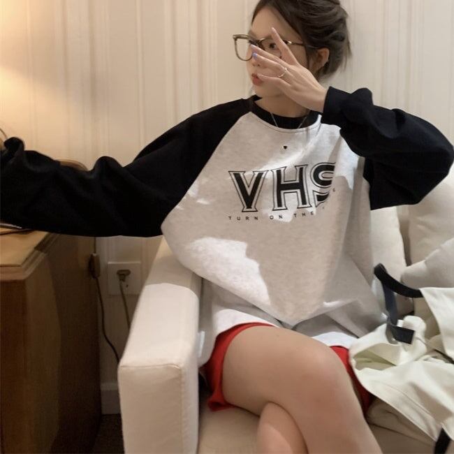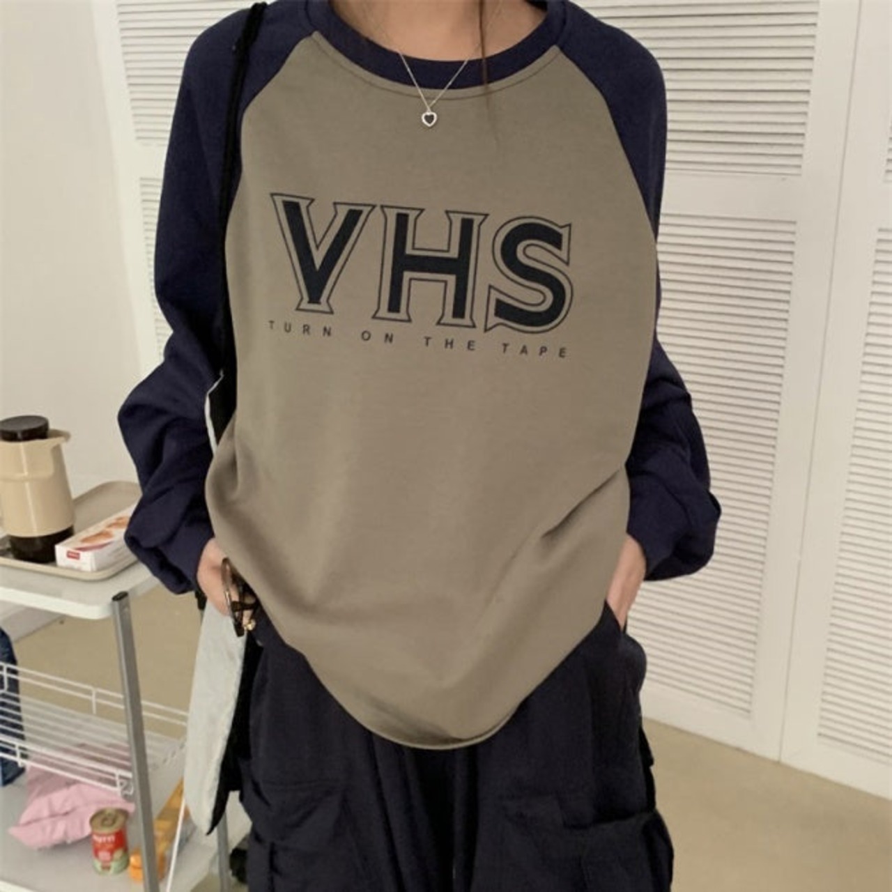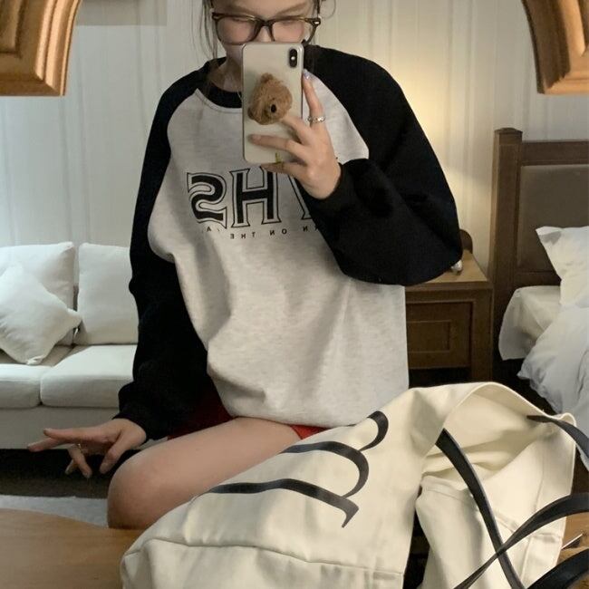 Tシャツ トレーナー レディース 韓国 ファッション ラグラン 長袖 ロゴ プルオーバー オーバーサイズ メンズライク
