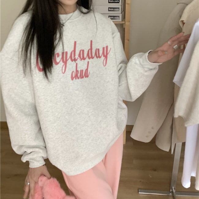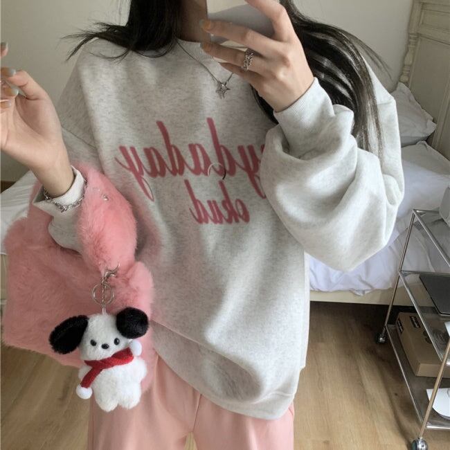 スウェット トレーナー レディース 韓国 ファッション 大きめ ロゴ オーバーサイズ グレー トップス 長袖