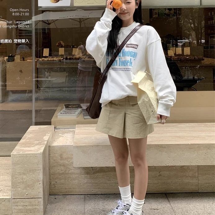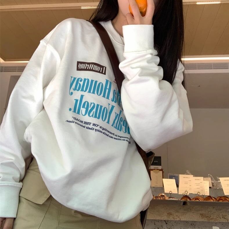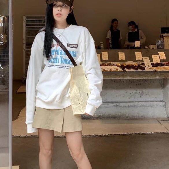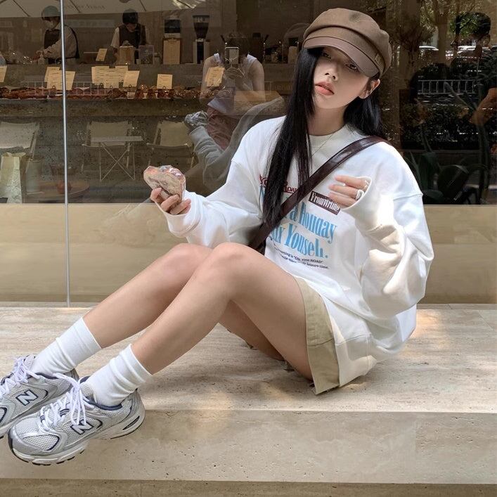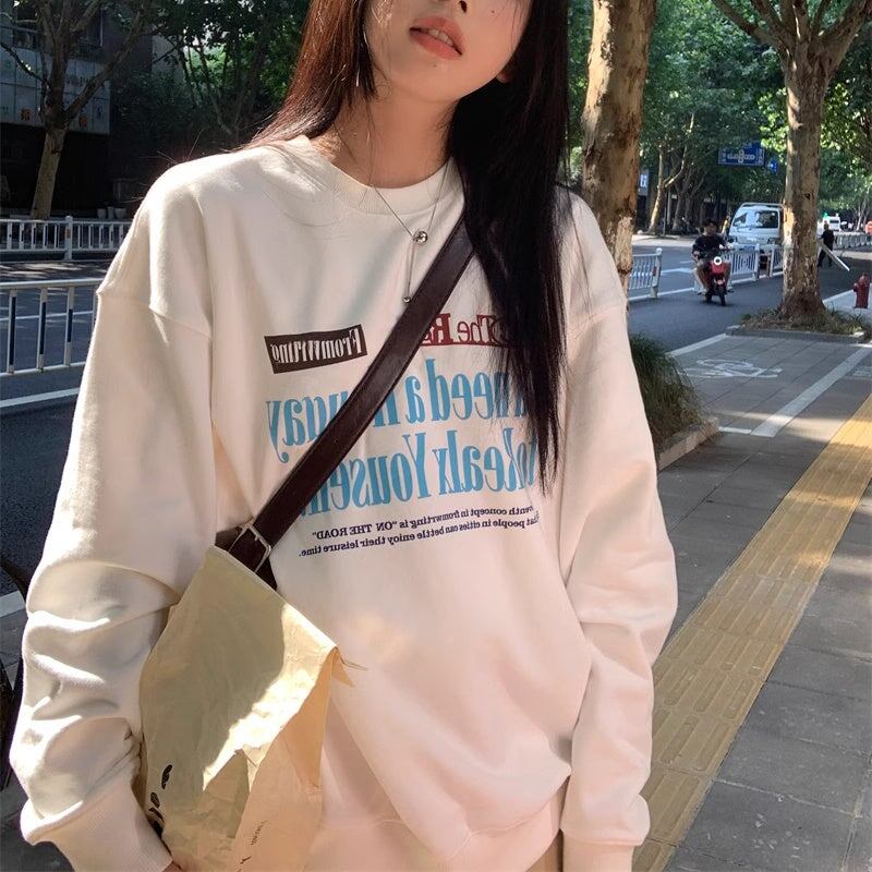 白トレーナー ロゴプリント レディース 韓国 ファッション 長そで スウェット トップス ベーシック ドロップショルダー 秋冬トップス