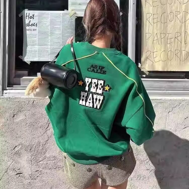 トレーナー スウェット レディース 韓国 ファッション ナンバーロゴ ライン袖 バックロゴプリント 冬トップス 刺繍 ロゴ