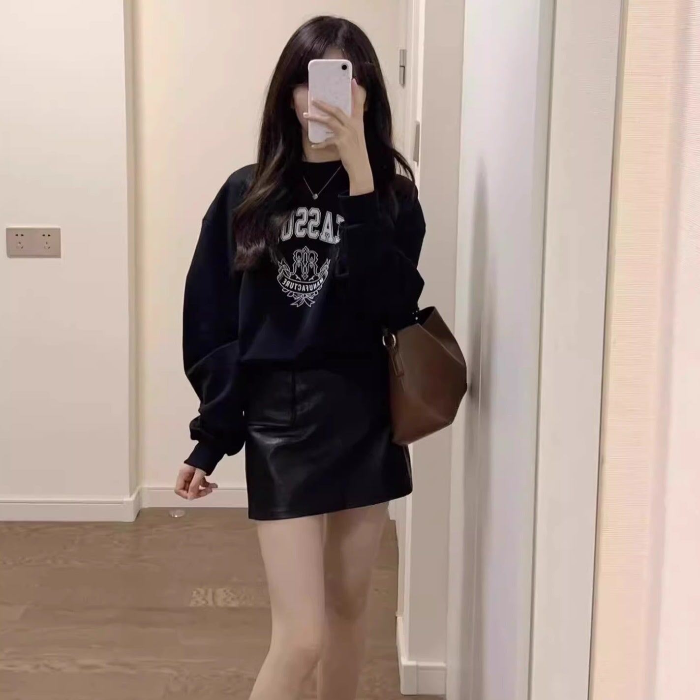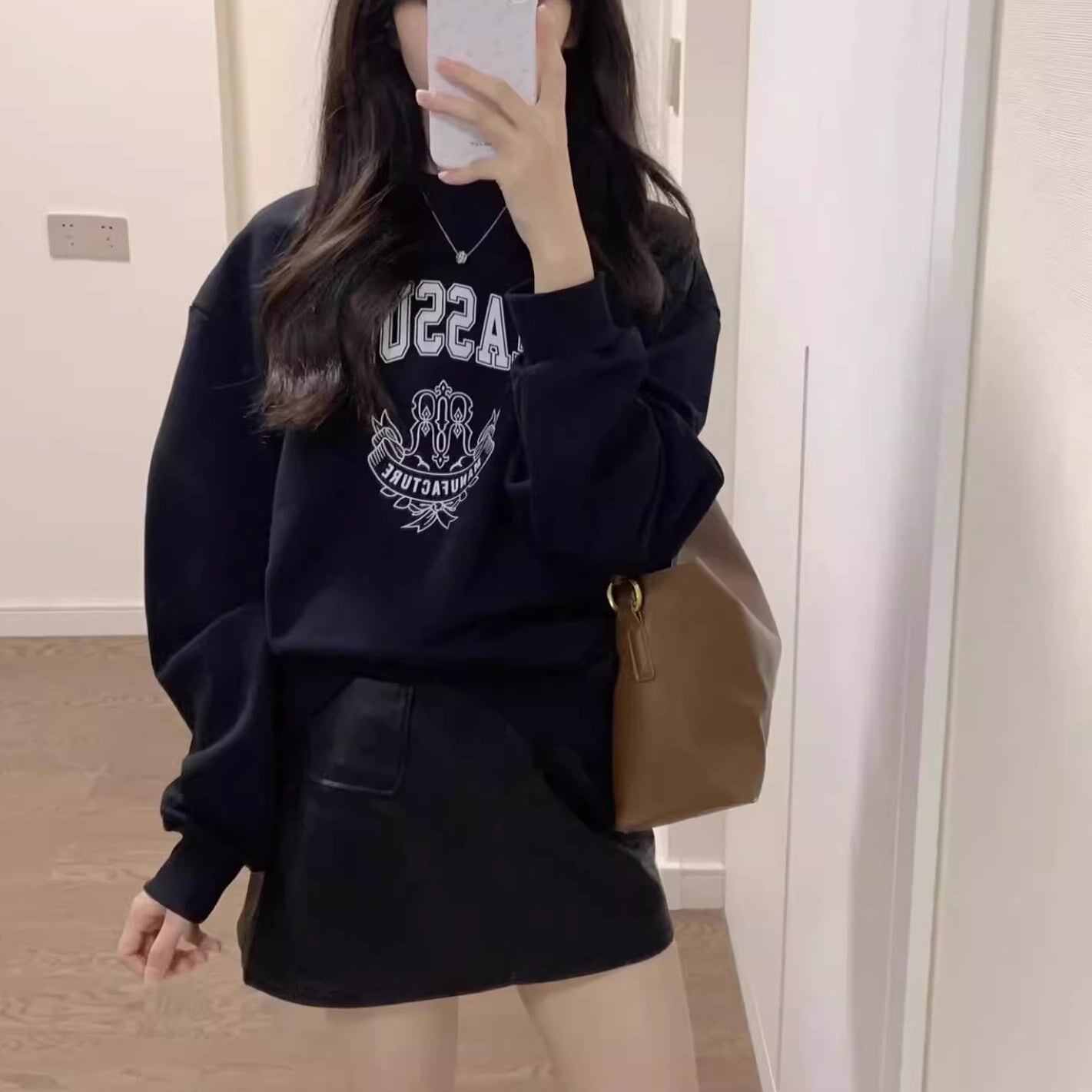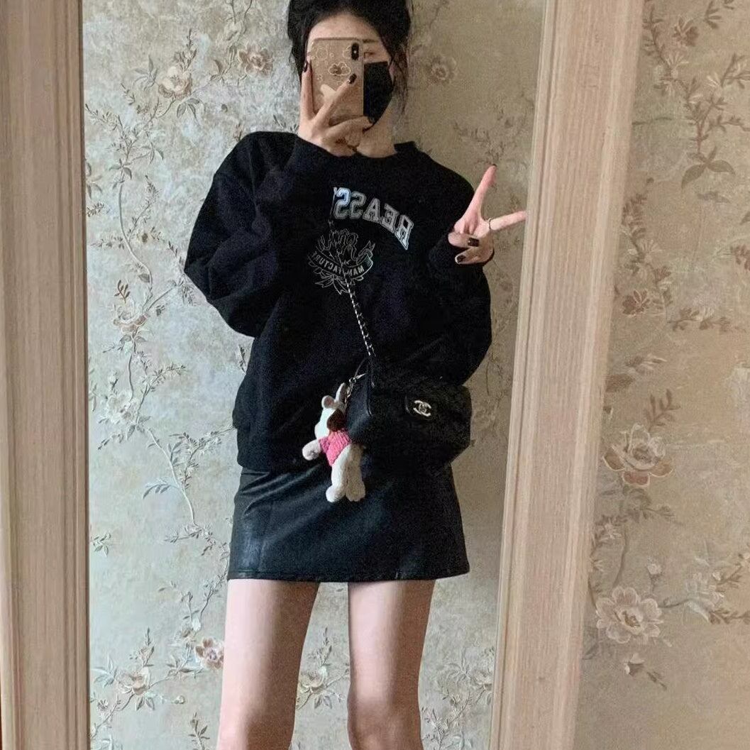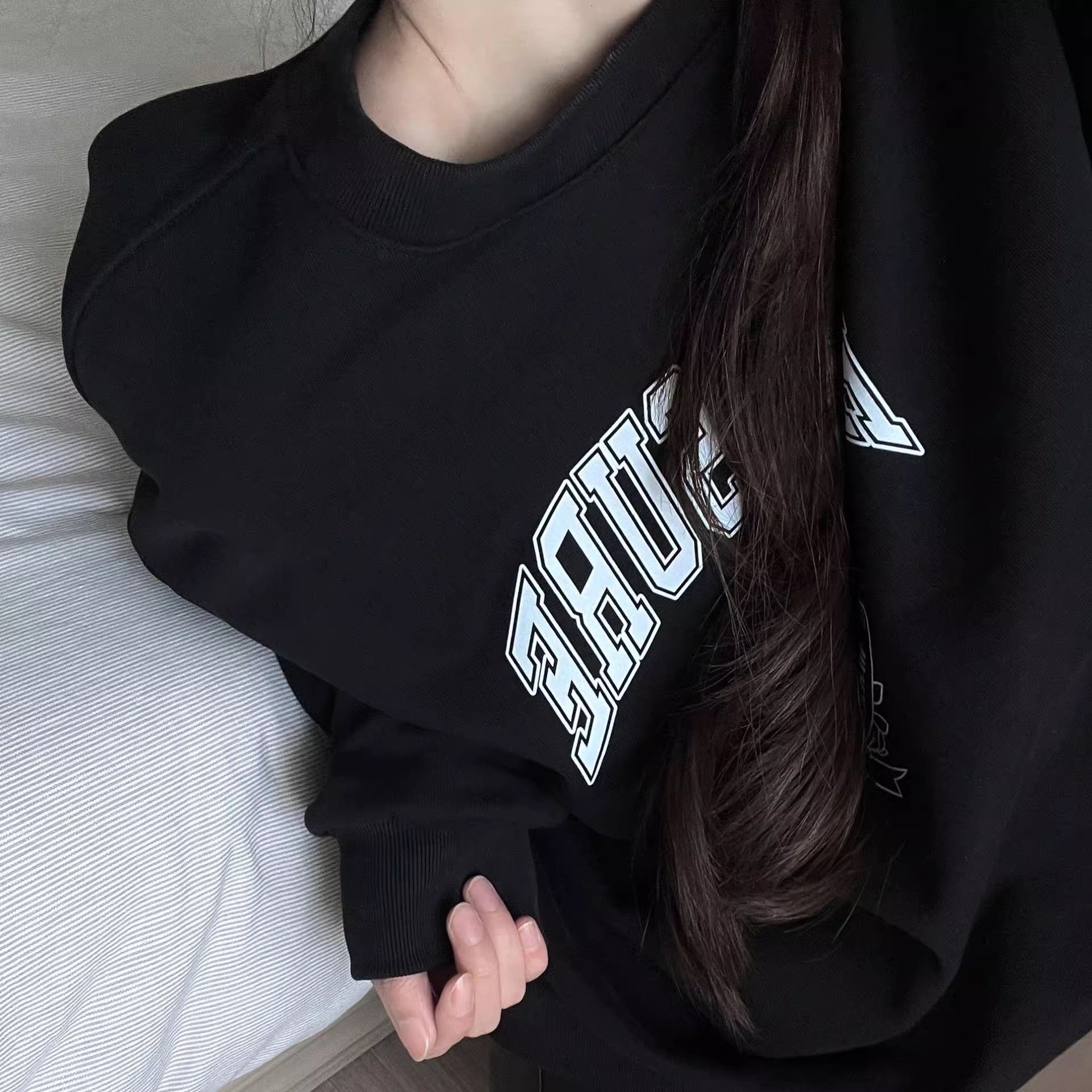 ロゴ トレーナー レディース 韓国 ファッション 黒 スウェット トップス