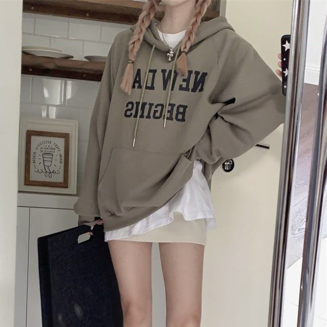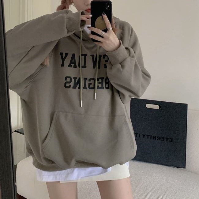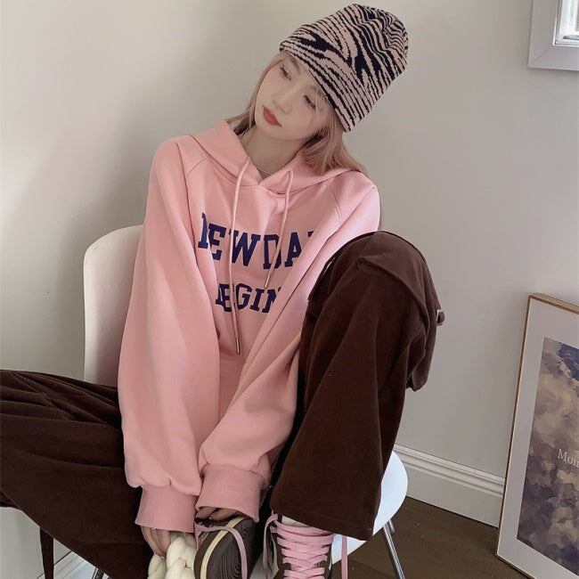 ロゴ パーカー レディース 韓国 ファッション プルオーバー パーカー オーバーサイズ ポケット