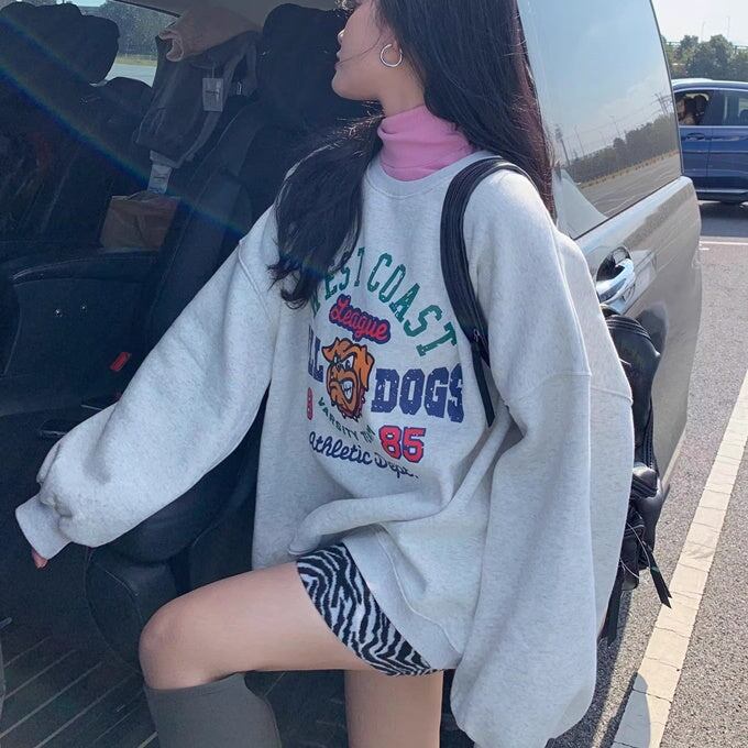 ビッグトレーナー レディース 韓国 ファッション ロゴ 犬 プリント ビッグシルエット オーバーサイズ ロング袖 グレートレーナー スウェット 秋冬 トップス ルーズフィット