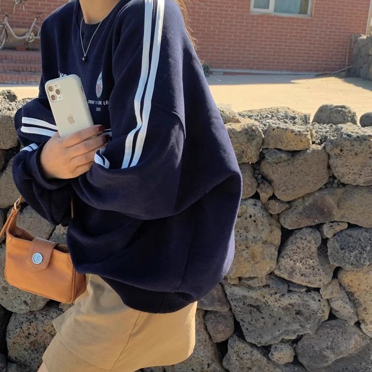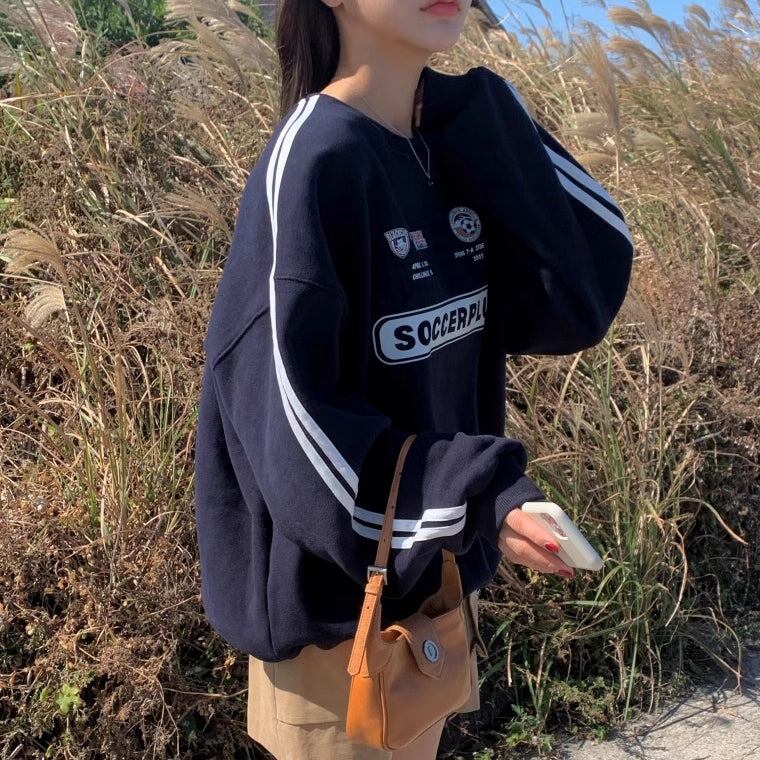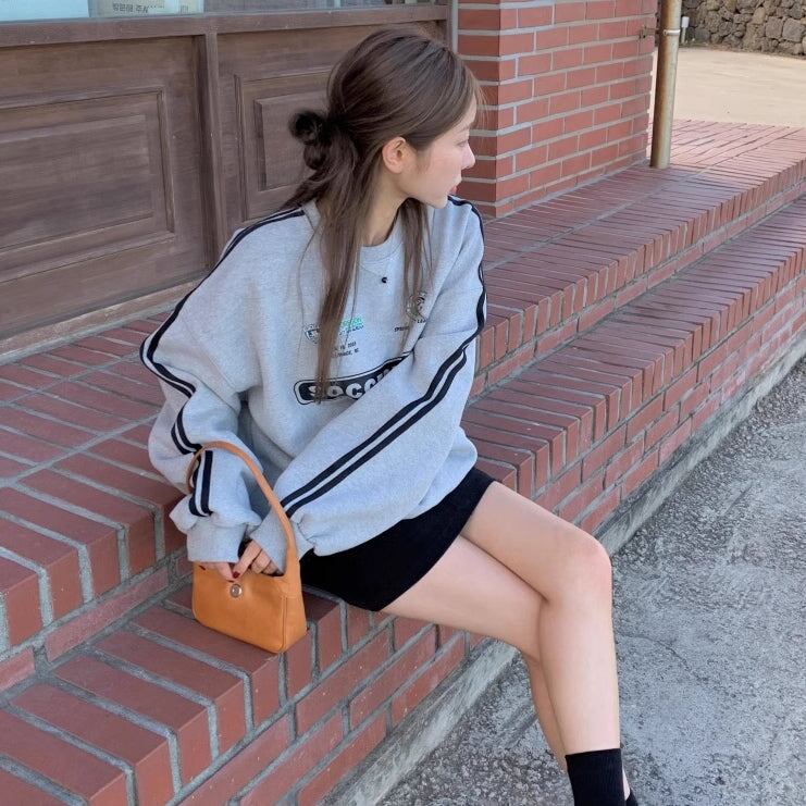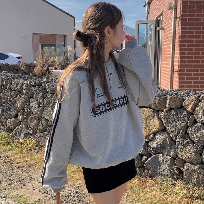 ロゴ プリント スウェット トレーナー レディース 韓国 ファッション 袖ライン 裏起毛 冬トップス
