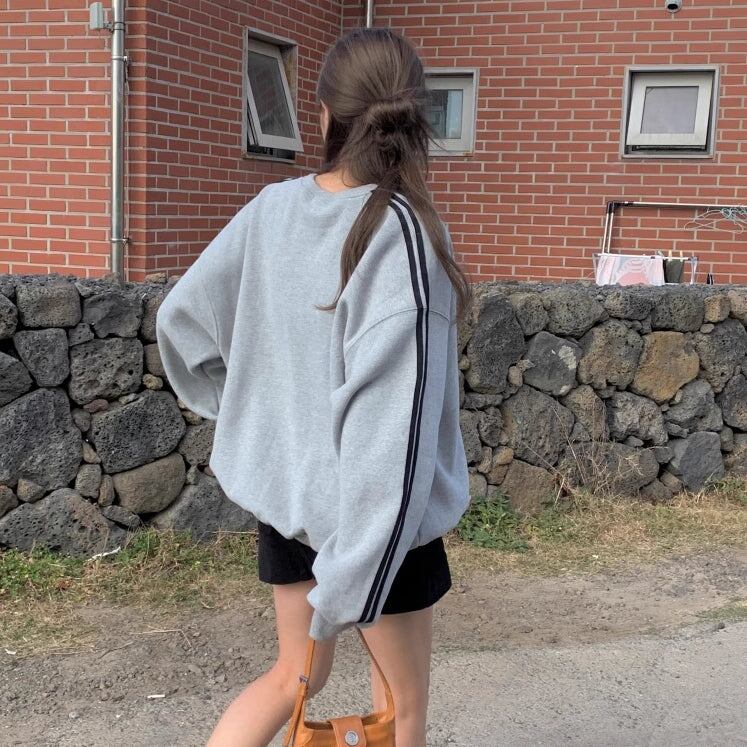 トレーナー スウェット レディース 韓国 ファッション 袖ライン 裏起毛 厚手スウェット カジュアルトップス 冬トップス メンズライク ビッグサイズ ゆったり