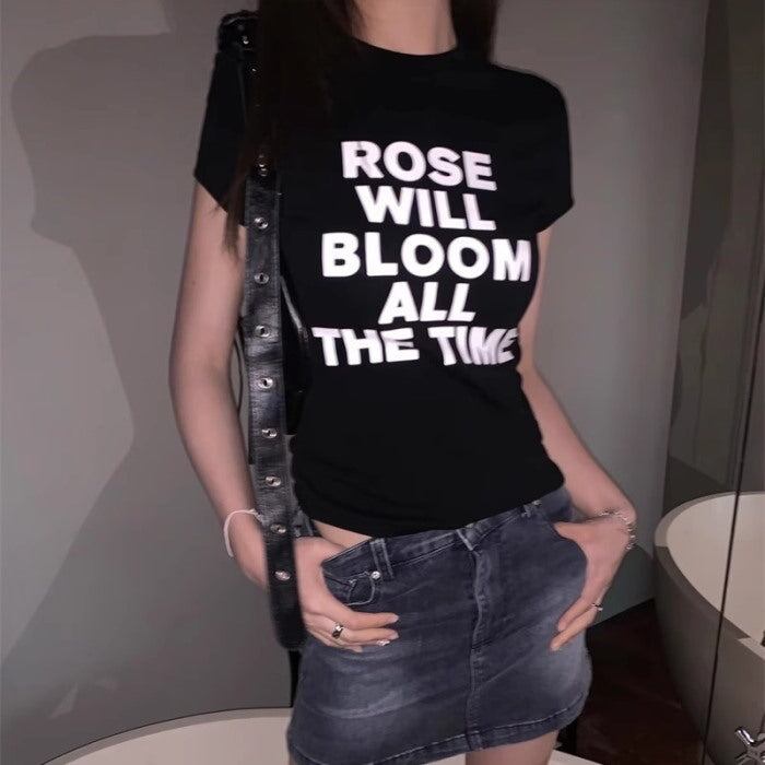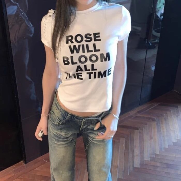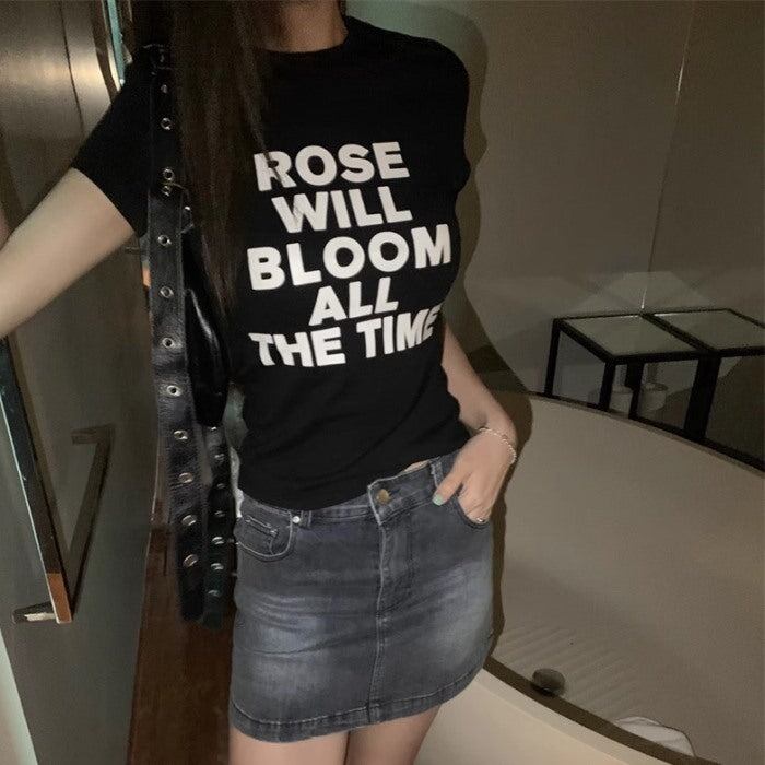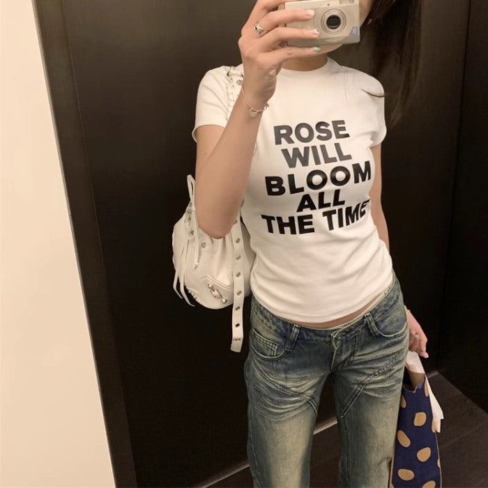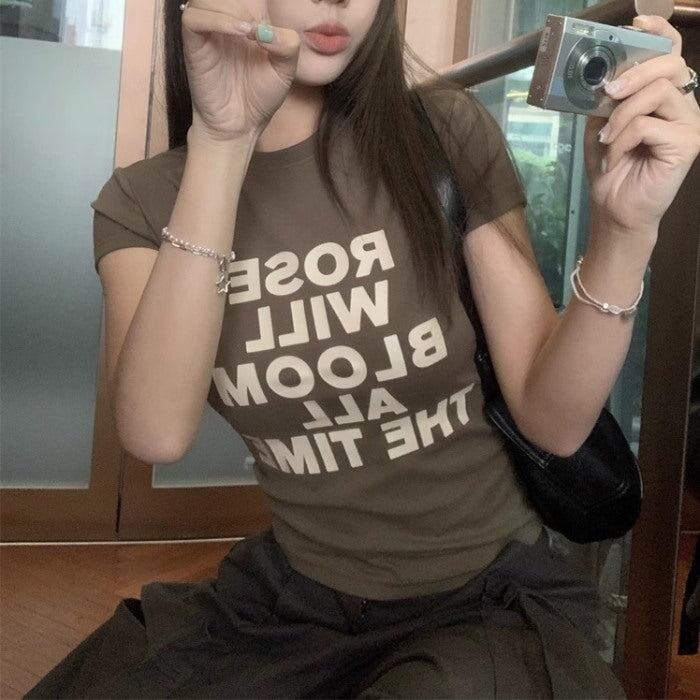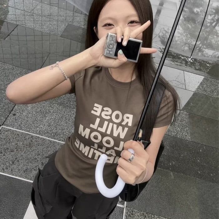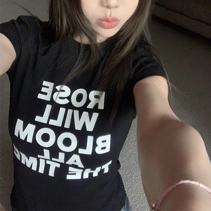 ロゴTシャツ レディース 韓国 ファッション 夏 トップス メッセージT シンプル タイト チビT