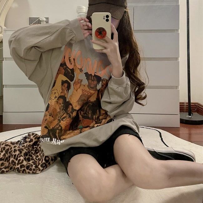 長袖 Tシャツ フォトプリント レディース 韓国 ファッション ロンT おしゃれ トップス 春シャツ オーバーサイズ ストリート カジュアル